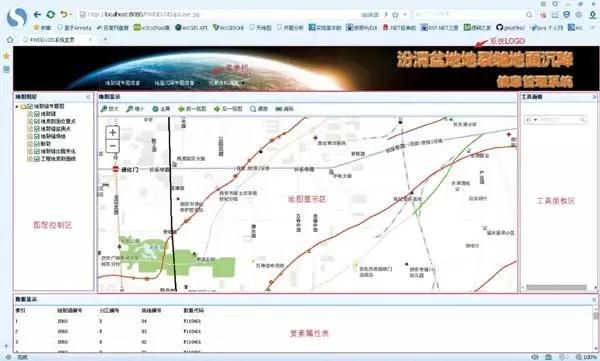 ▲汾渭盆地地裂缝地面沉降信息管理系统主界面