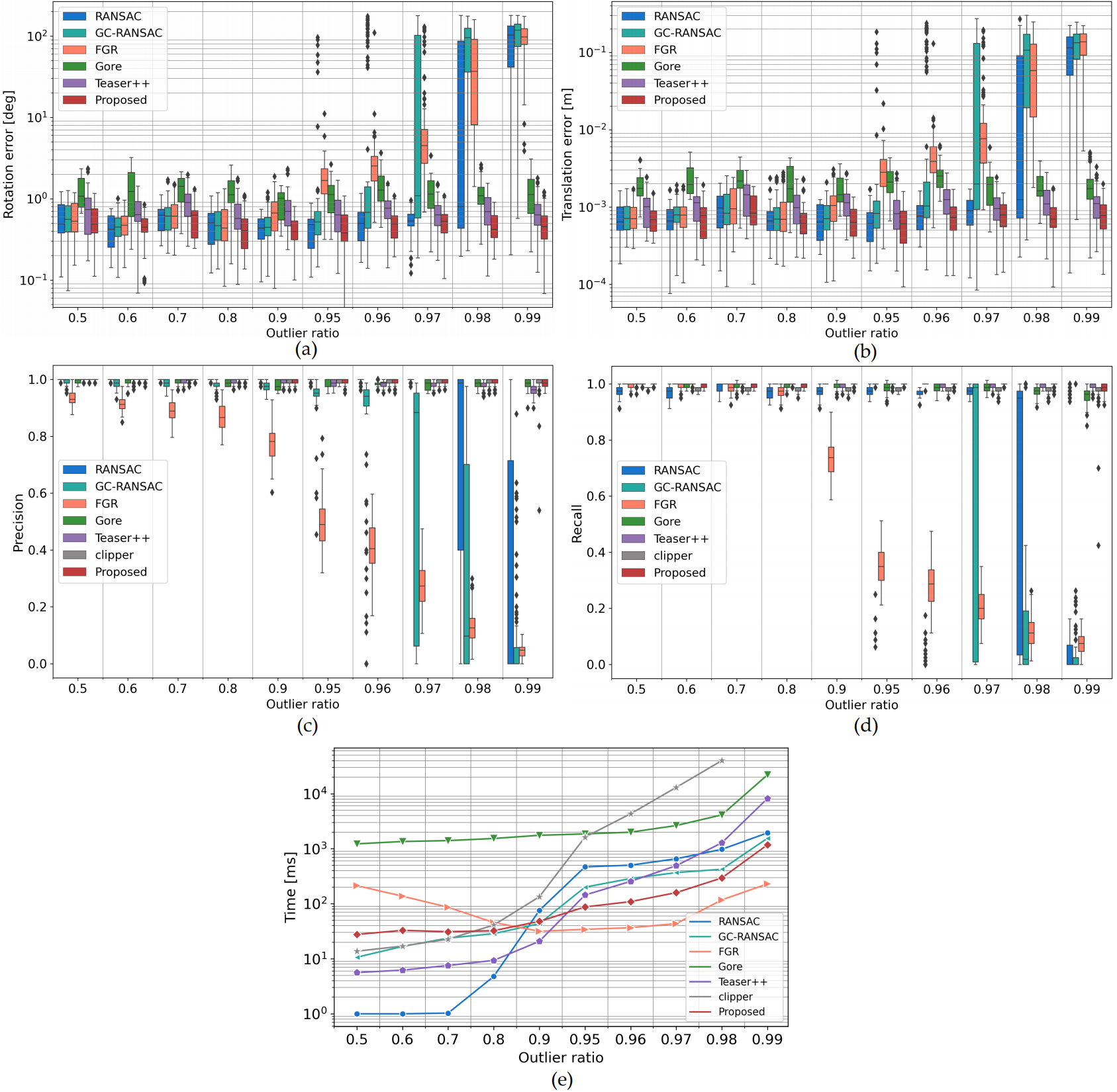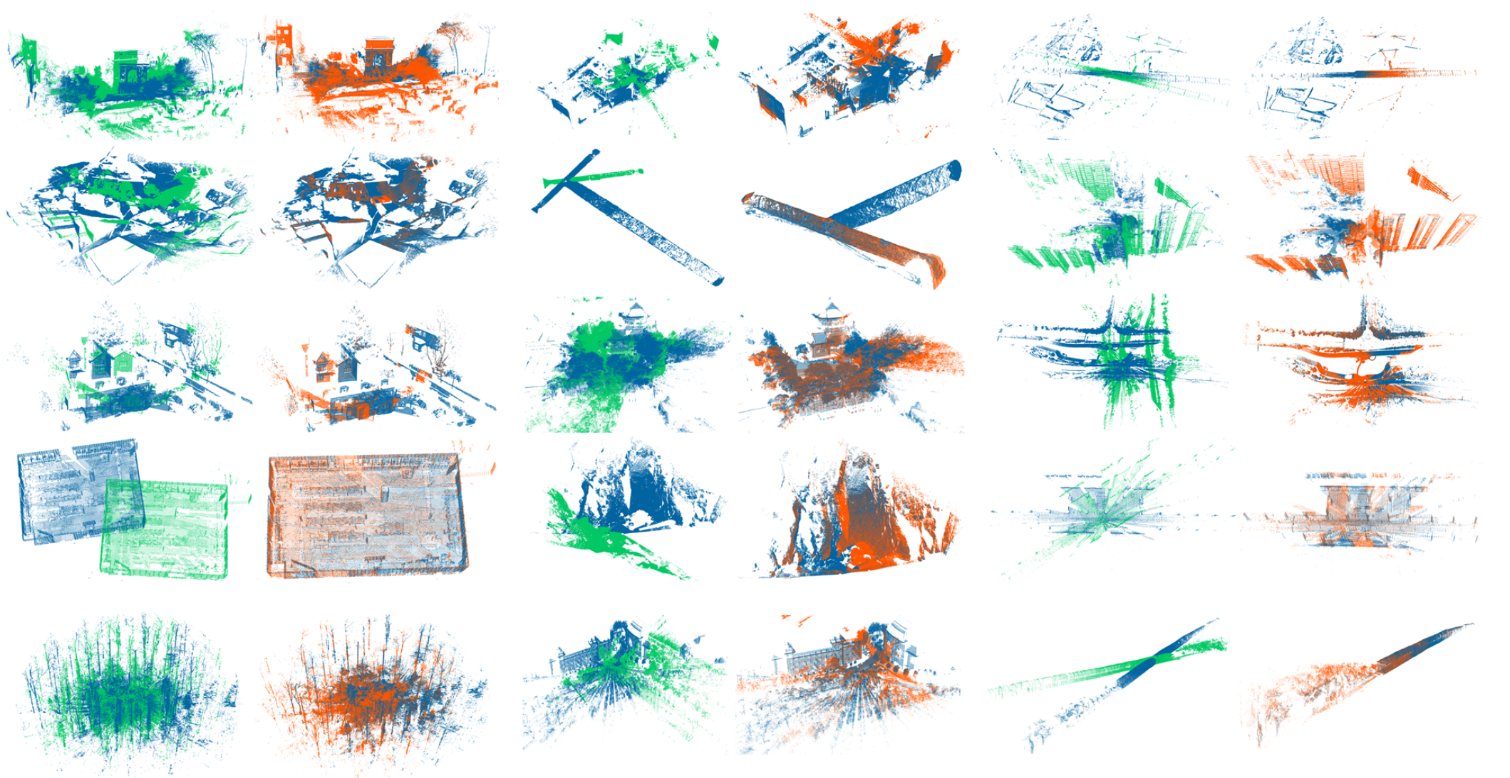 论文提出的方法实现了快速的误匹配剔除和准确的配准参数估计。大量模拟实验和具有挑战性的真实数据实验表明,该方法在同名点误匹配率高于99%的情况下仍能有效的实现点云配准,且效率优于目前最先进的方法。论文还与基于深度学习的方法进行了对比,结果表明所提出的方法实现了相当甚至更好的误匹配剔除和配准表现。此外,由于论文方法不需要额外的特定训练过程和昂贵的GPU内存,它可以在低成本的设备上高效鲁棒的运行。