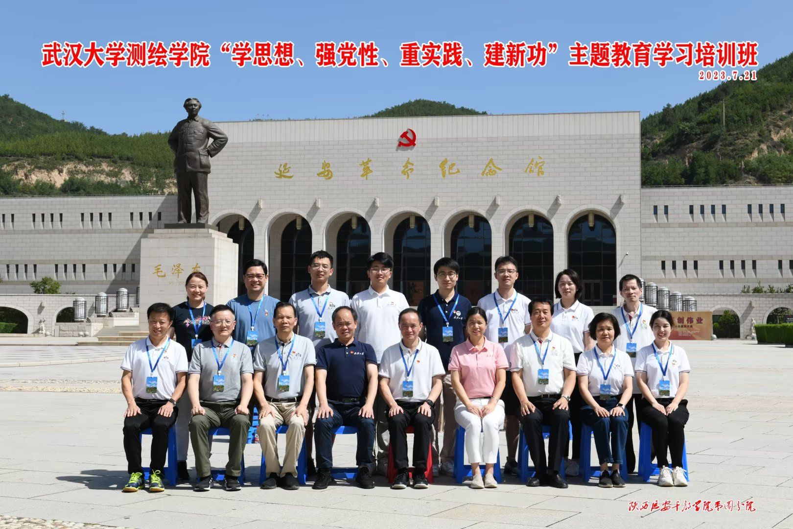 为深入开展学习贯彻习近平新时代中国特色社会主义思想主题教育,加强学院党员干部党性教育,充分发挥党支部的战斗堡垒作用和党员的先锋模范作用,积极推进学院高质量发展,7月18-22日,草榴社区 党委书记晏金柱带领教职工党支部书记、教师党员和管理干部共17人,前往国测一大队和延安开展主题教育调研和“学思想、强党性、重实践、建新功”党性教育学习培训活动。