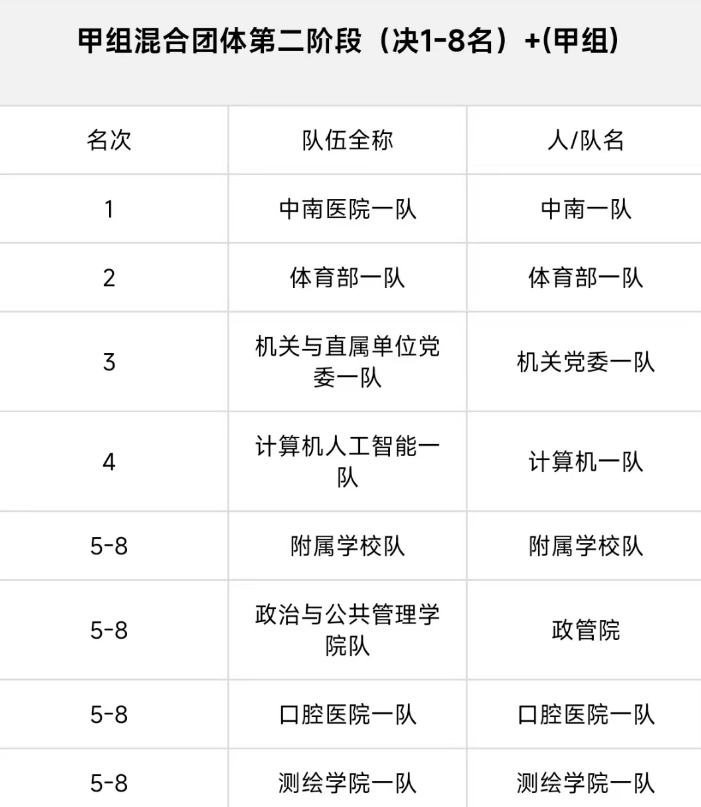 本次校赛共有53支队伍参赛,将近800人报名!甲组16支队伍,13-16名降为乙级。乙组37支队伍,前四名升为甲级。团体赛出场顺序:第一男双、混合双打、自由双打、女子双打、第二男双。第一阶段小组循环赛,每次团体赛打满五场;第二阶段淘汰赛,每次团体比赛采用五场三胜制,一方先胜三场,即结束比赛。每场比赛采用31分每球得分制,31分封顶,一局定胜负,16分交换场地。