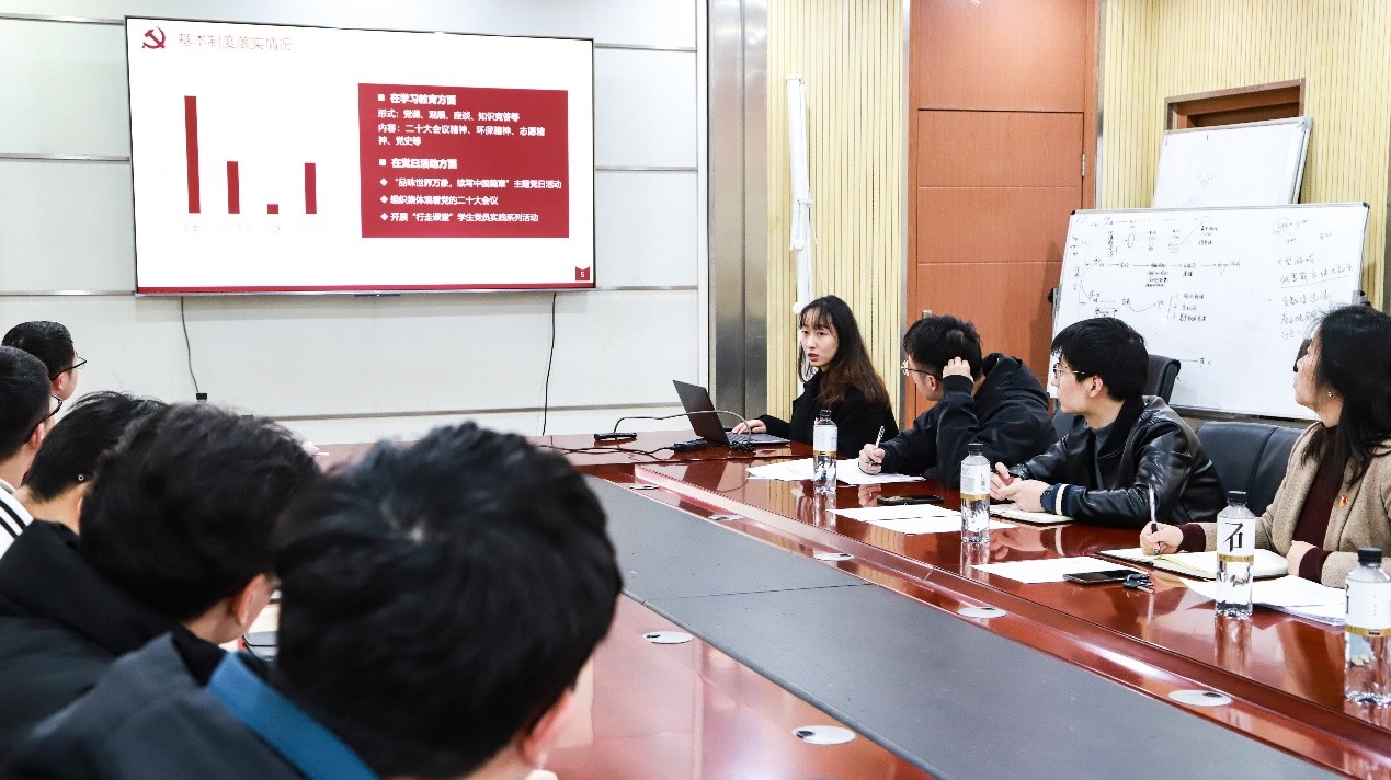 胡俊英副书记总结点评,并布置了新学期六个板块的重点工作。胡书记对各党支部的工作情况表示充分肯定,并强调各党支部书记要直面薄弱环节和突出问题,根据意见建议和整改举措,厘清未来工作思路,研究制定整改方案并抓实落细。最后胡书记提出了三点工作建议,一是进一步加强思想建设,增强学生党员的党性修养;二是进一步加强组织建设,提升基层党组织的组织力;三是进一步加强作风建设,树立学生党员的新形象。