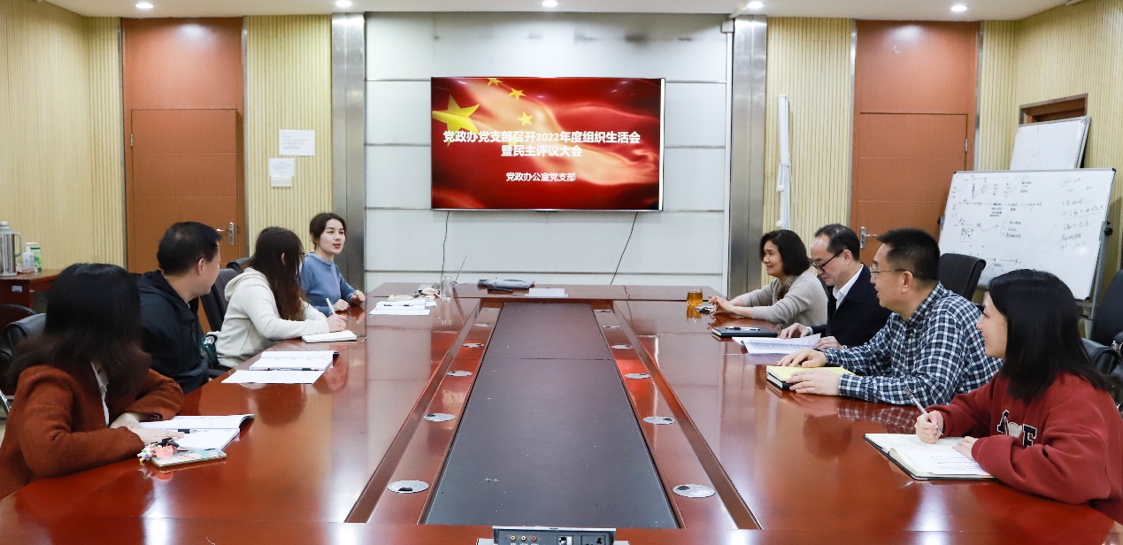 3月10日下午,党政办公室党支部召开2022年度组织生活会暨民主评议大会,在学习领会党的二十大精神的基础上,联系实际查摆问题,查找自身不足,开展批评与自我批评。会议由支部书记褚丽丽主持。
