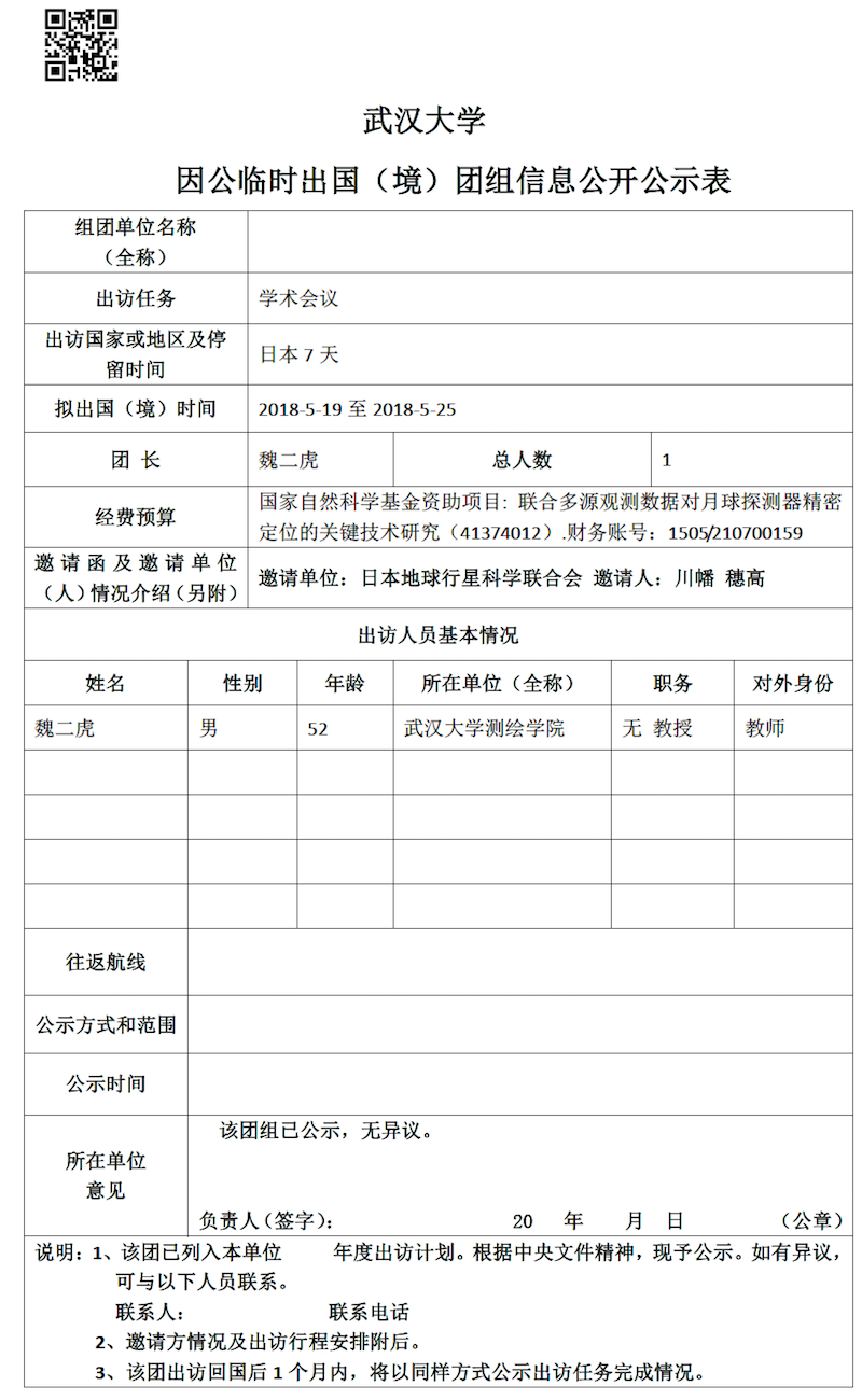 因公临时出国(境)信息公示