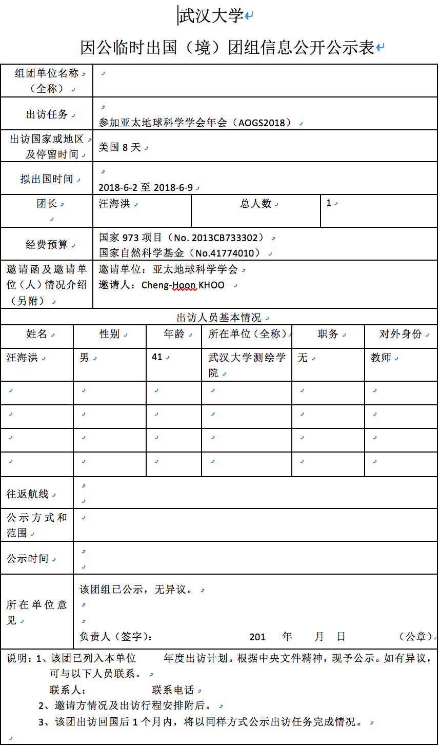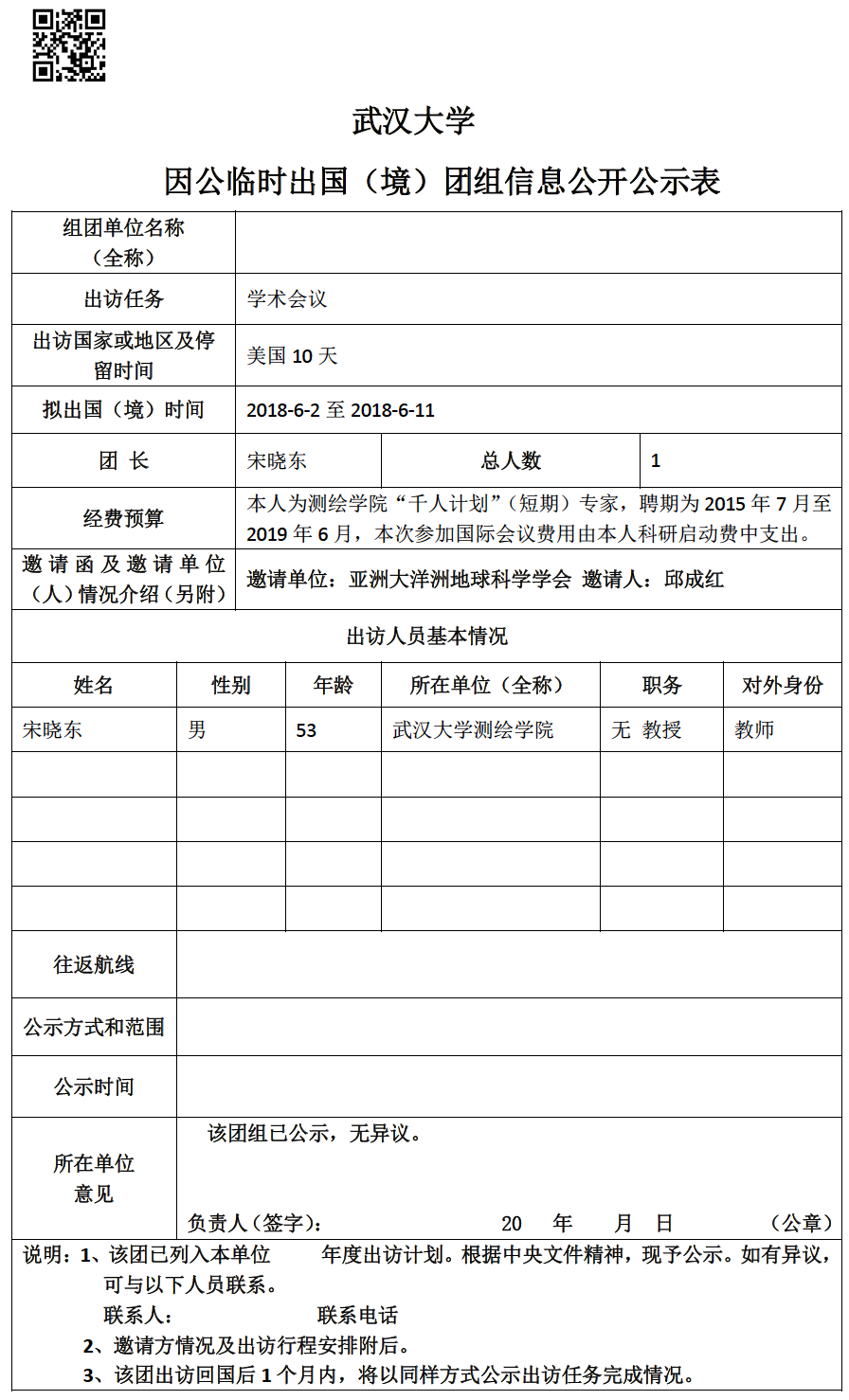 因公临时出国(境)信息公示