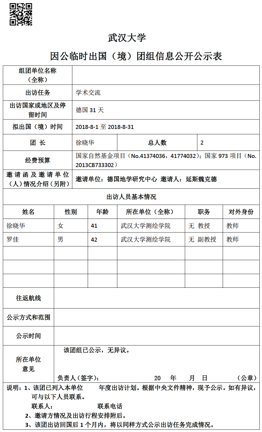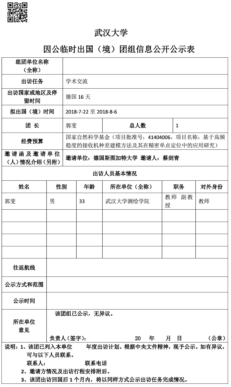 因公临时出国(境)信息公示