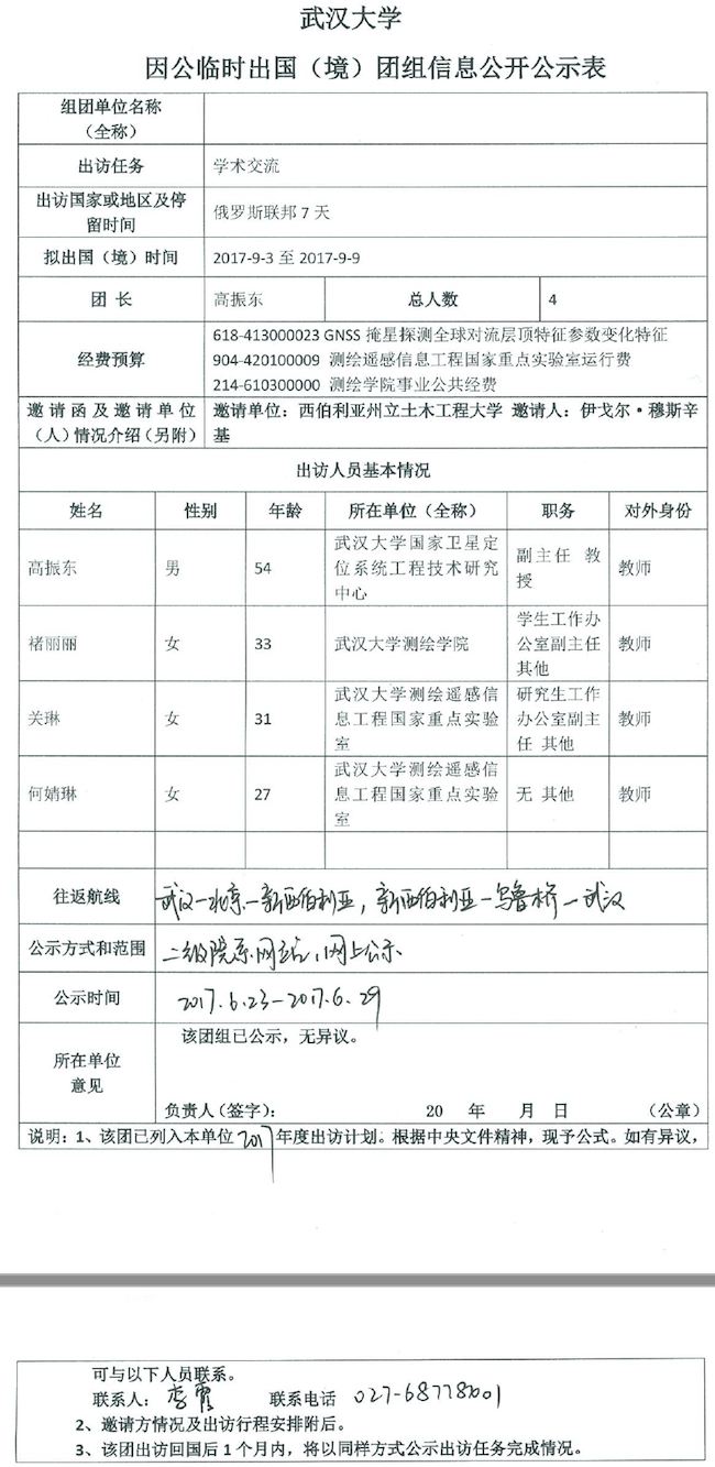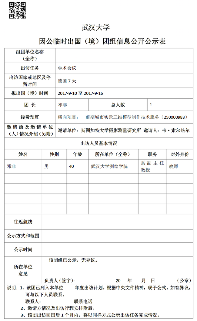因公临时出国(境)信息公示