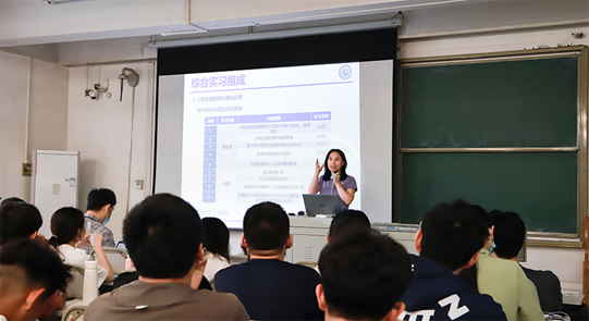 朱惠萍老师详细介绍了综合实习的具体内容、任务、日程安排、实习流程和实习报告撰写等,着重强调了实习期间的纪律要求和分工协作。