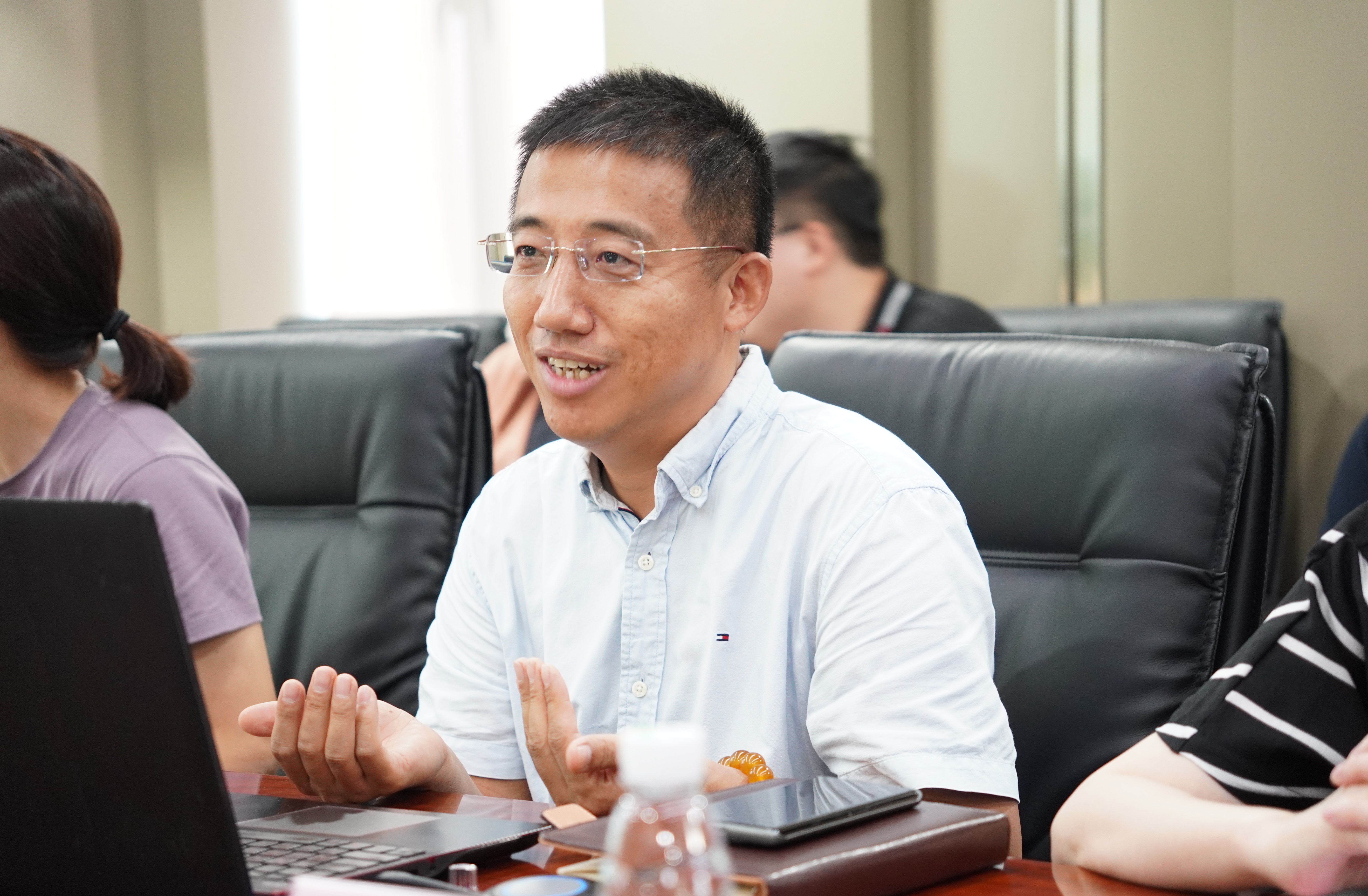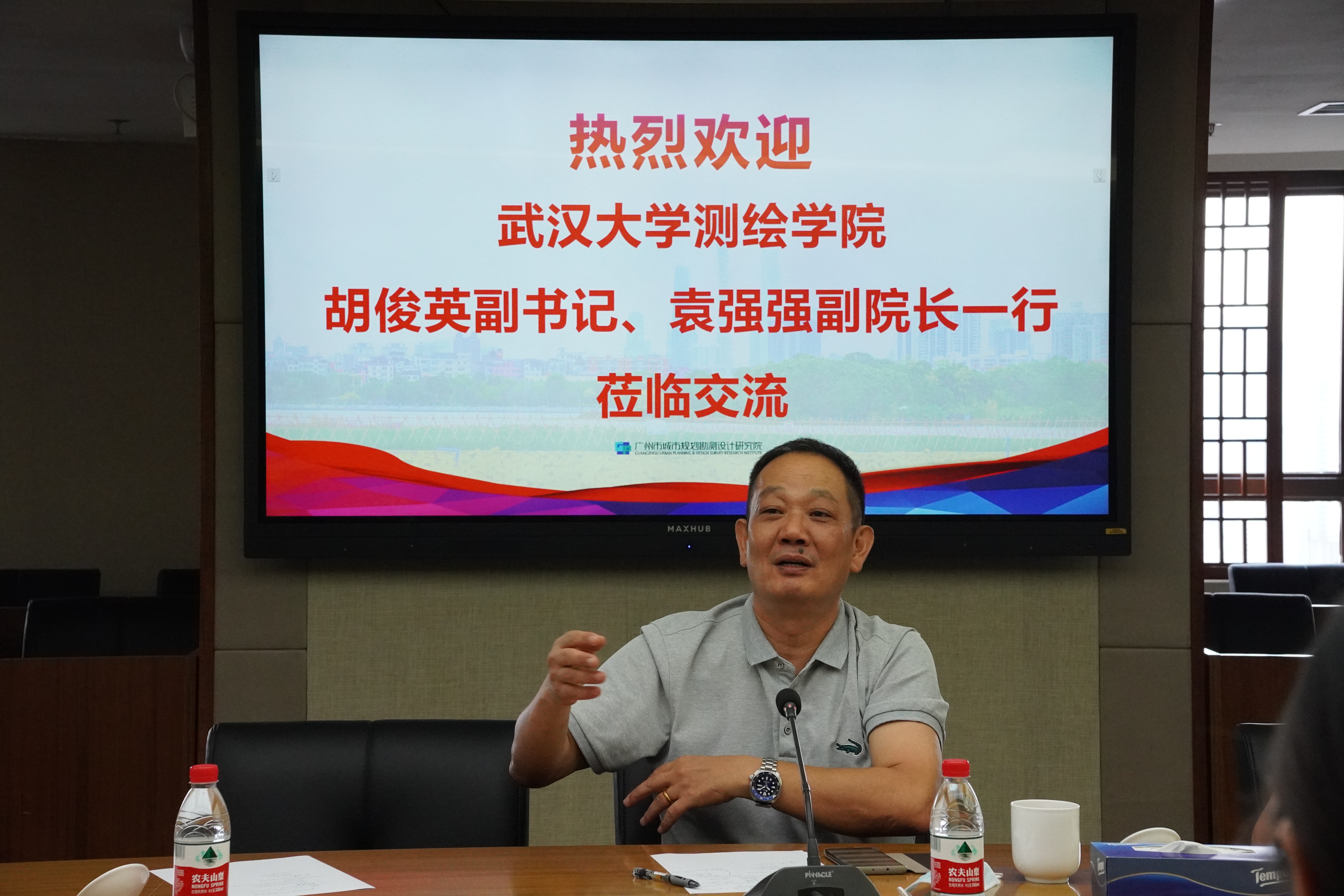 7月27日上午,走访调研工作组来到了广州市城市规划勘测设计研究院(以下简称“广勘院”),广勘院副总经理、董事林鸿出席并主持调研座谈会,广勘院各分院、中心主要负责人陈展鹏、何骞、易鹏、赵小阳、喻永平、祁芳、王天应等作为校友代表参会,同时参会的还有广勘院人事部副部长王娅琳。