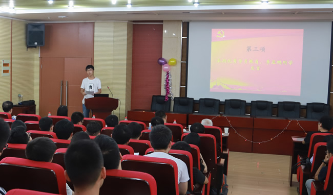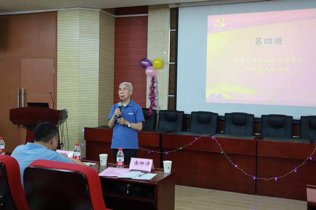 余仰涛教授讲话。余教授要求学员们要继续夯实党的理论知识,发挥主观能动性、加强自我培养、自觉学习、加强实践锻炼,内化于心、外化于行,针对自己在入党条件上存在的欠缺,在今后的学习和实践中逐步完善,达到具备理想信念坚定、综合素质优良、作用发挥充分的党员基本属性。