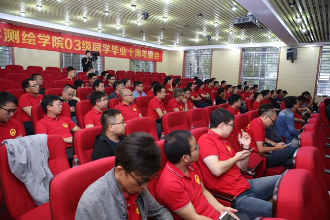 10月6日,草榴社区 03级约90位校友返校纪念毕业十周年,回忆大学生活,畅谈师生情谊,共话学院发展。副校长李建成院士,院长姚宜斌,副院长、测绘工程系班主任代表邹进贵教授、地球物理系班主任代表王佩军教授,辅导员毛旭东等应邀参加活动。