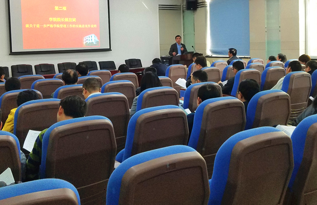 会议主要议题是审议《关于进一步严格学院管理工作的实施意见》、《2015年-2016年财务检查报告》和《本科教学工作量计算办法(修订稿)》。