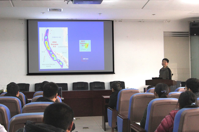 1月12日,加拿大地质调查局太平洋地学中心资深研究员王克林应邀为草榴社区 师生做了题为“Learning from crustal deformation associated with the Mw 9.0 2011 Tohoku-oki earthquake” 的学术报告,学院部分师生聆听了报告。