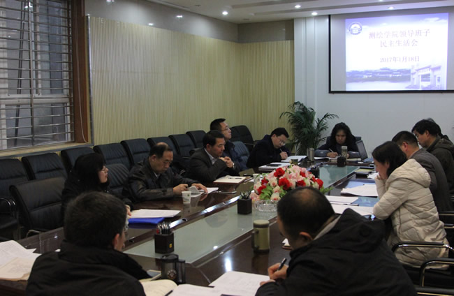 会上,孙萍首先通报了院领导班子2015年度民主生活会整改落实情况和2016年度民主生活会筹备情况。她说,按照学校《关于认真开好2016年度中层党员领导干部民主生活会的通知》文件精神,院党委完成了工作方案,意见征求,谈心谈话,撰写对照检查材料和发言提纲等前期准备工作。她汇报了2016年院领导班子民主生活会对照材料。她介绍,学院领导班子聚焦“四个合格”标准,对照在政治、执行纪律、品德和发挥作用等方面的情况,重点从思想、组织、作风、纪律等方面查找了七个方面的问题,并分析了原因,提出了努力方向和具体整改措施。随后,她汇报了个人对照检查材料。紧接着,姚宜斌、许才军、闫利、邹进贵、史振华、张小红、张朝龙、王中全等依次汇报了个人对照检查材料,开展批评与自我批评。