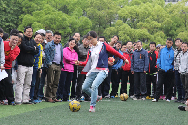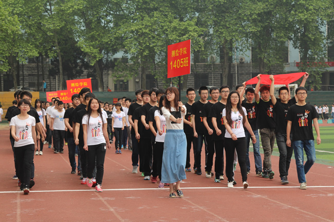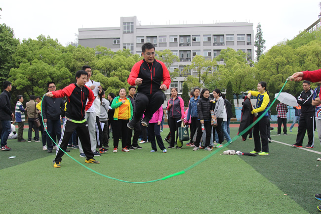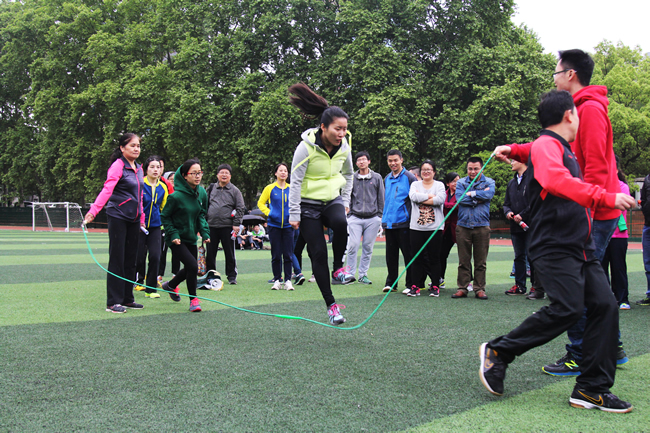 为增强此次运动会的参与性和趣味性,除了传统的比赛项目之外,还增设了许多团体趣味项目,如,拾贝、滚铁环、足球射门、篮球投篮、集体跳绳等。本科1405班、1505班、1506班、1507班集体表演了第九套广播体操。统一的服装,整齐的动作,尽显体操之美,更赢得了阵阵掌声。随后各类竞赛项目正式开始。全院师生热情高涨,踊跃参与,尽显火热的运动激情与和谐团结的学院氛围。下午4点左右,下起了小雨,在结束集体跳绳项目之后,运动会提前结束。虽然意犹未尽,但师生们都充分感受到了运动的魅力和快乐,并对明年的师生春季运动会满怀期待。