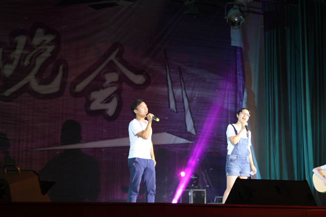 随着毕业生的照片展览、1208班组成的乐队为同学们带来了三首风格各异的曲目,有伤感,有抒情,也有激情,晚会就这样随着情绪的高涨渐入气氛。