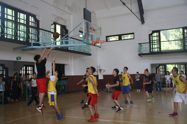 9月28日中午,宋卿体育馆被热情与欢呼所环绕。正在这里举行的是草榴社区 2015届新生“军训杯”篮球赛决赛。草榴社区 新生男篮与经管学院新生男篮,将于此决出冠军的归属。