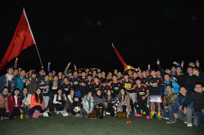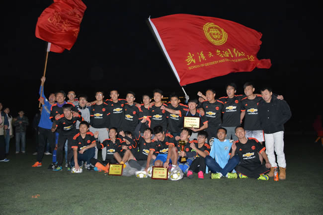 第一轮,两边球进!第二轮,测绘点球被扑出!第三轮,经管点球被扑出!五轮之后,4:4平,比赛继续胶着。第六轮测绘率先起脚,屏息、凝神,球划出了优美的弧度,进了!接下来,经管球权,“唰!”,只见球划出一条异样的弧线——从球门上方划过——所有的测绘观众们都沸腾了!我们赢了!测绘赢了!今天,绿茵场上的王者诞生;今天,振兴杯的荣耀属于我们;今天,我们一路走来,以场均进6球的霸气证明了自己。大家一起欢呼:“测绘!冠军!冠军!测绘!”