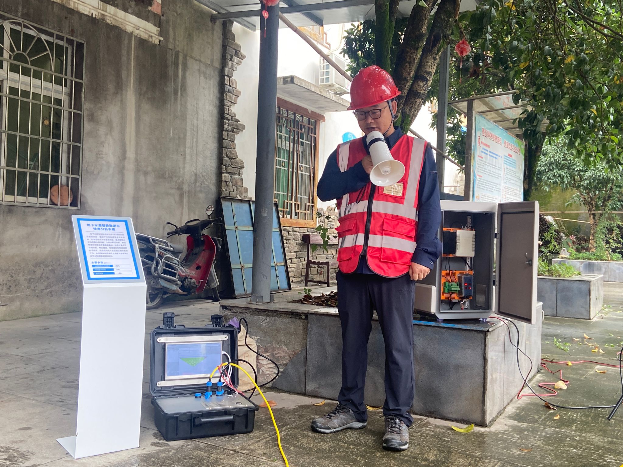 团队成员正在示范智能水源勘测设装备