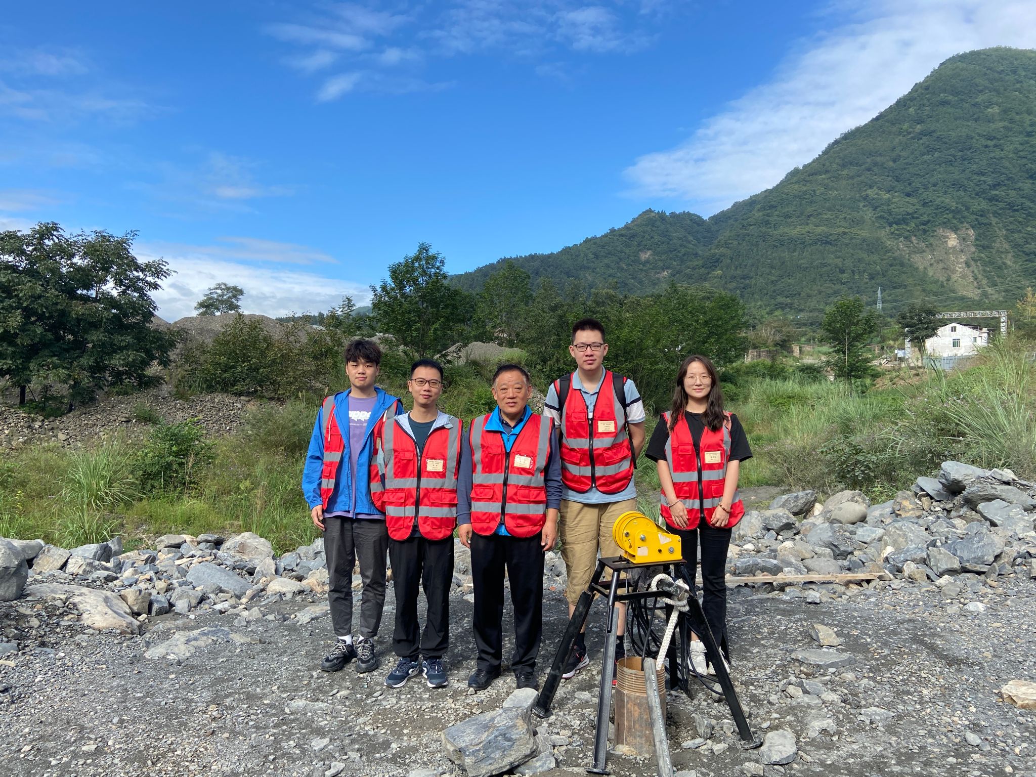 项目应急示范确定在北川县曲山镇黄家坝村,2023年9月23日,应急示范假定北川发生7.5级地震。在地震发生的一个小时之内,张双喜教授团队接到在曲山县黄家坝村找水的指令。黄家坝村地处于龙门山地震带,山区地形复杂,多种地质灾害频发。当黄家坝村再次发生地震时,人民群众将面临无水可饮的局面,村民盼望新水源已久,示范的地震应急水源将一举多得。