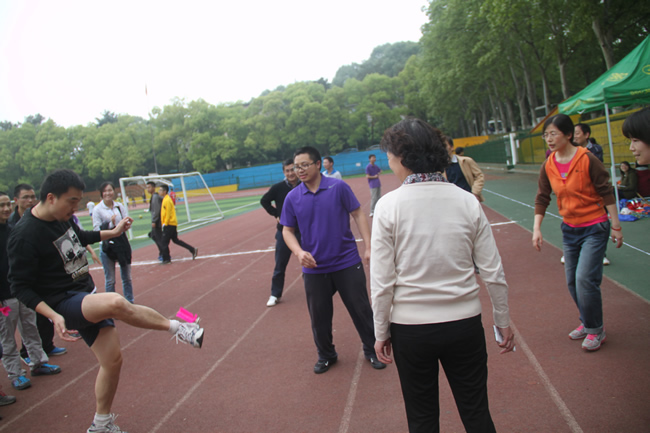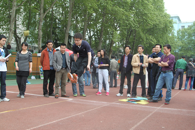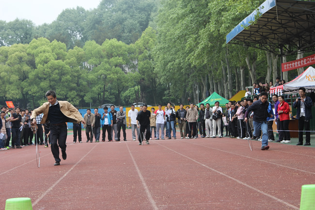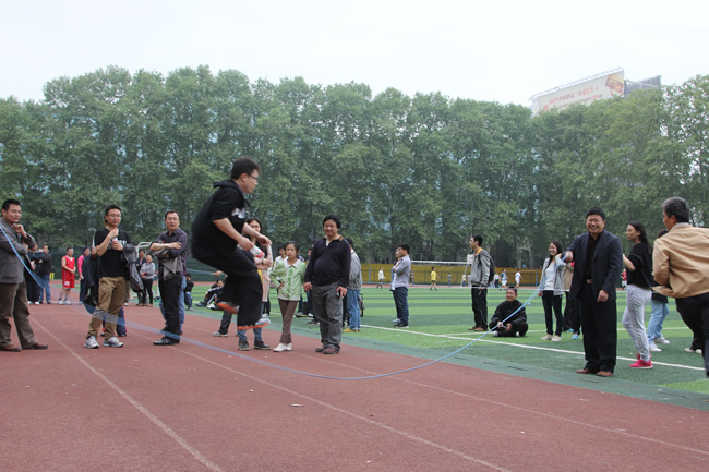 为增加此次运动会的参与性和互动性,增设了许多团体趣味项目,如搭桥过河、3人4足、趣味接力、集体跳绳、滚铁环、多人踢毽子、拾贝等。师生热情高涨,同场竞技,深入交流,展现出了火热的运动激情、昂扬的精神风貌和和谐的学院氛围。