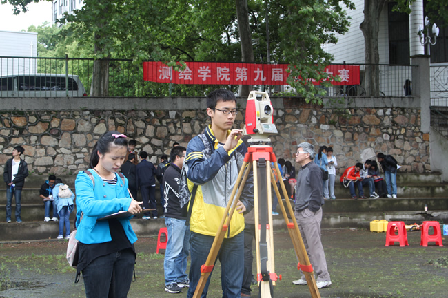此次比赛主要是外业操作比赛,分为导线测量和水准测量两个项目,每个项目又分为仪器操作测量环节和数据处理环节。在18名专业老师和20余名学生志愿者的组织协调下,比赛从早上7点半正式开始,持续到下午5点半结束,紧张而有序。