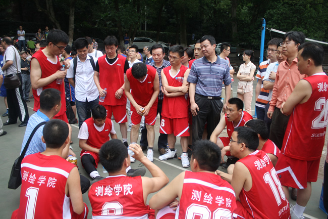 “全力防守”,”积极进攻”,队员们相互提醒,相互激励,他们斗志昂扬,拼尽全力。“测绘加油”,”测绘必胜”,由学院领导和师生员工组成的强大啦啦队摇旗呐喊,擂鼓励助威,他们气宇轩昂,激情忘我。虽然遗憾地屈居亚军,但队员们和啦啦队员的脸上都洋溢着自豪,因为队员们再次取得历史性突破,并展现出了测绘健儿勇住直前,舍我其谁的英雄风采。在师生员工心中,他们也是冠军。