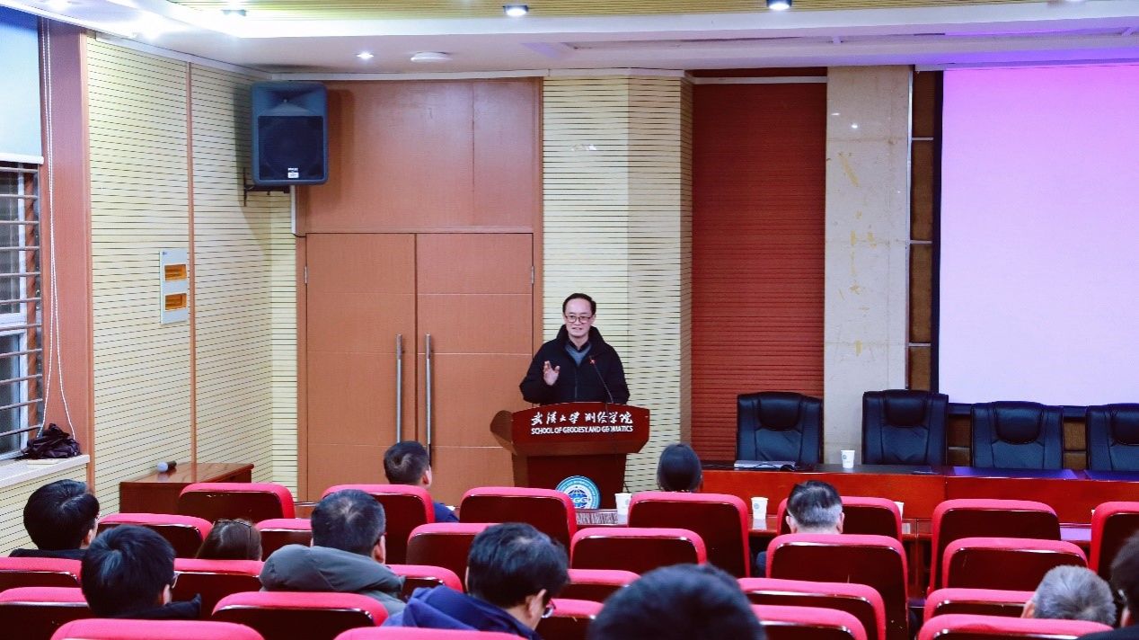 1月18日下午,在202报告厅召开了全院教职工大会。大会邀请了中国工程院院士、著名大地测量与卫星导航专家刘经南先生,为全院师生做题为“关于测绘学科发展的几点思考”的学习辅导报告。学院领导及全体教职工齐聚一堂,认真听取报告,并共同回顾了过去一年的工作成果和展望学院未来的发展蓝图。会议由姚宜斌院长主持。