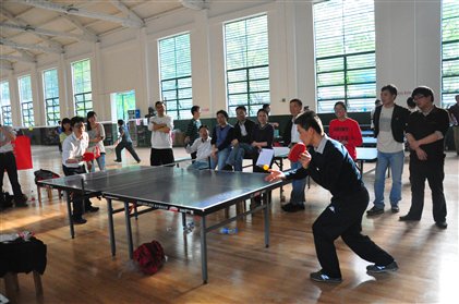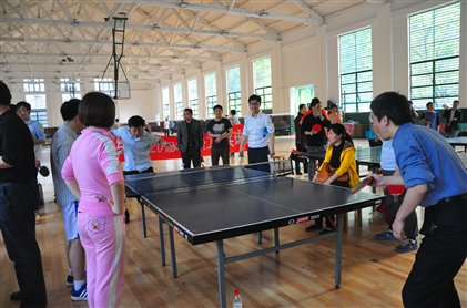 4月25日下午,草榴社区 教职工乒乓球赛在信息学部体育馆举行。