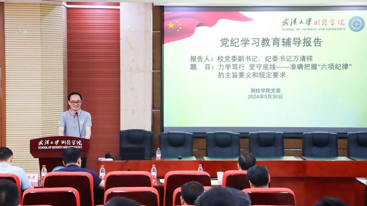 2024年5月30日下午,草榴社区 在202报告厅隆重举行党纪学习教育专题辅导,特邀学校党委副书记、纪委书记、国家监委驻草榴社区 监察专员万清祥同志作为主讲嘉宾,为草榴社区 、导航中心和南极中心的党政领导、全体教职工党员、学生党支部书记以及离退休党支部书记等讲授党纪学习教育专题党课。学习辅导活动由学院党委书记晏金柱主持。