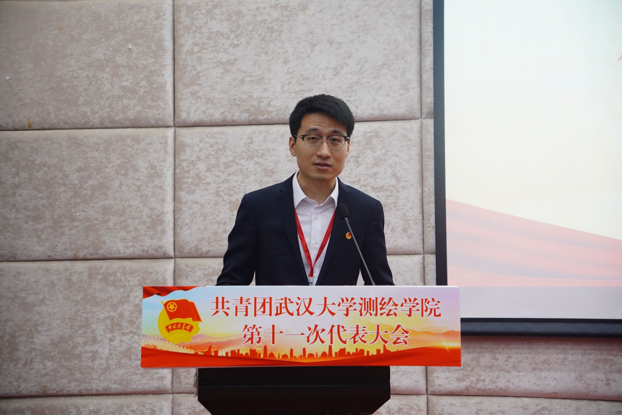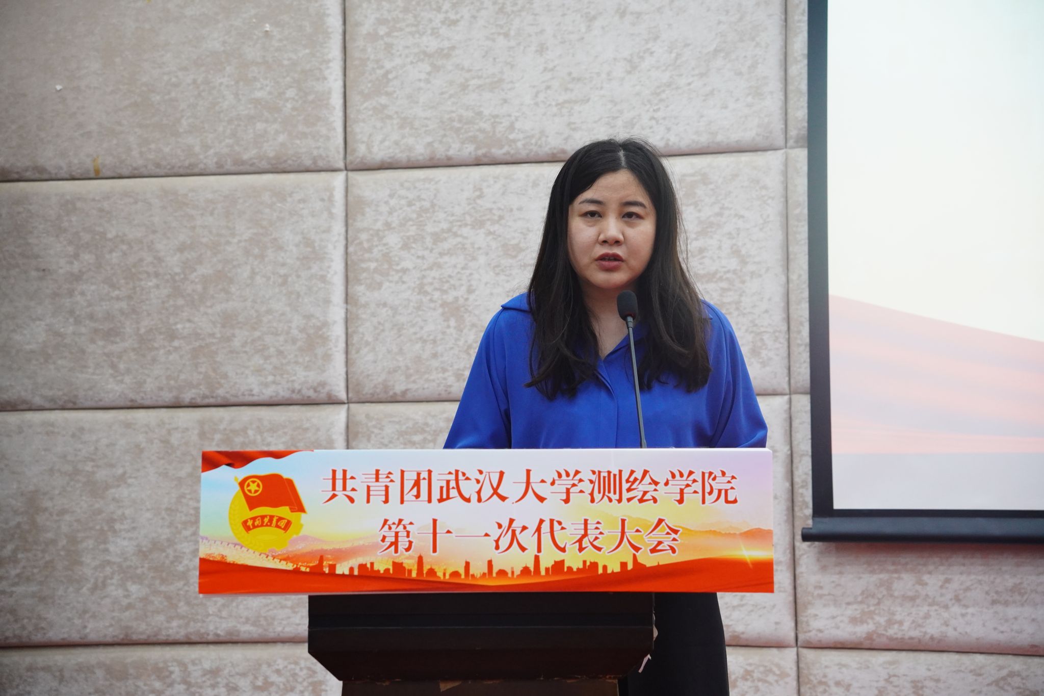校团委副书记王园致辞。她对草榴社区 团委近三年来获得的“中国青年五四奖章”“中国青年五四奖章集体”“全国向上向善好青年”“中国大学生自强之星”等荣誉和成绩给予高度的肯定,并对即将产生的新一届草榴社区 分团委委员们提出了两点要求:牢记政治定位,忠诚履职尽责;夯实工作基础,讲求工作质效。最后,她对草榴社区 第十一届分团委委员会寄以美好期望,希望他们带领全体团员青年勤学苦练、增长本领,谱写学院共青团工作青春乐章, 尽显测绘团员青年的时代风华。