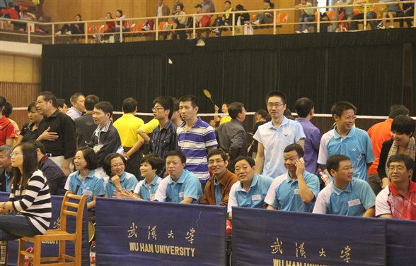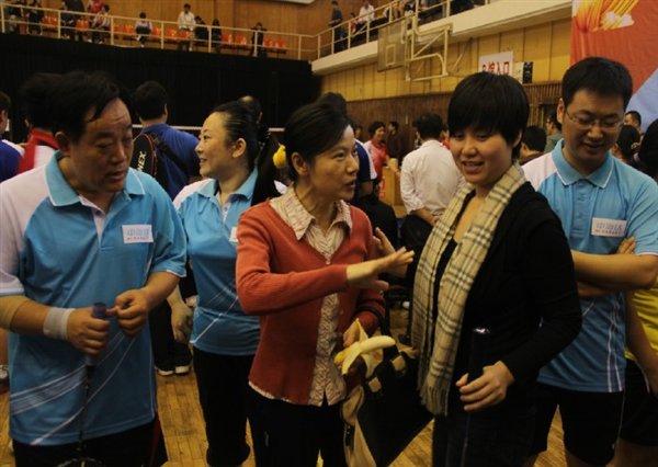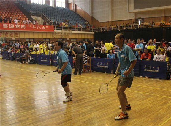 在13日上午9:30进行的小组循环首场赛中,草榴社区 教工羽毛球队不畏强手,顽强拼搏,力克上届第8名物理学院队,为下阶段比赛奠定了良好的基础。后两场比赛,因赛制安排,最后一场比赛甚至打到晚上9点半才结束。尽管队员们连续作战,顽强拼搏。因整体实力所限,在非常疲劳的状态下,功亏于连续两届第三名水利水电学院队和有体育专业队员参赛的珞珈学院队。14日上午8:30开始交叉淘汰赛,在主力因事缺阵的情况下,2:3惜败基础医学院,使得现场气氛一下子就紧张起来了。要保甲,后面的两场比赛必须全胜。面对这一情况,尽管因比赛时间的不确定,队员们没能吃午饭和午休,场上参赛队员们拼了!有的队员拼到腿抽筋,有的队员血染赛场;场下啦啦队拼了,“测绘!加油!”响彻体育馆。两强相逢勇者胜,终于挑落政管学院队,完胜物理学院队,再次获得黄金般的甲级席位!