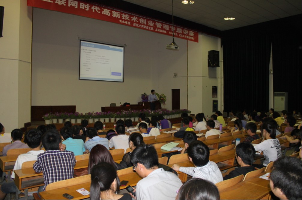 此次讲座邀请了北京四维图新孙玉国总裁担任主讲嘉宾。1993年博士毕业到如今,孙玉国用18年的时间,见证了中国电子导航产业的从无到有,并站在了潮头。孙博士此次专程来武汉为武大学子做一场创业专题讲座,说起主讲此次讲座原因,他动情的讲:“今天我站在这里,不是以一个成功者的角色,而是在坐各位的校友、学长”,一下子拉近了和下面听众的距离。简洁生动的ppt切合了孙博士创业至今的路程,他以自身的经历讲起,深深的触动了在场的同学。他说,18年我只做了一件事,就是让全国普通老百姓用上了专业电子导航图。要知道在他创业的初期,这是一件几乎不可能完成的任务,资金、技术、政策、管理等等各种前所未见的问题都摆在了面前,但就是这样,孙玉国做下来了,而且做成功了,今天四维图新导航信息技术有限公司是中国该领域的领头羊。他正是用自己的亲身经历来解读创业种种。
