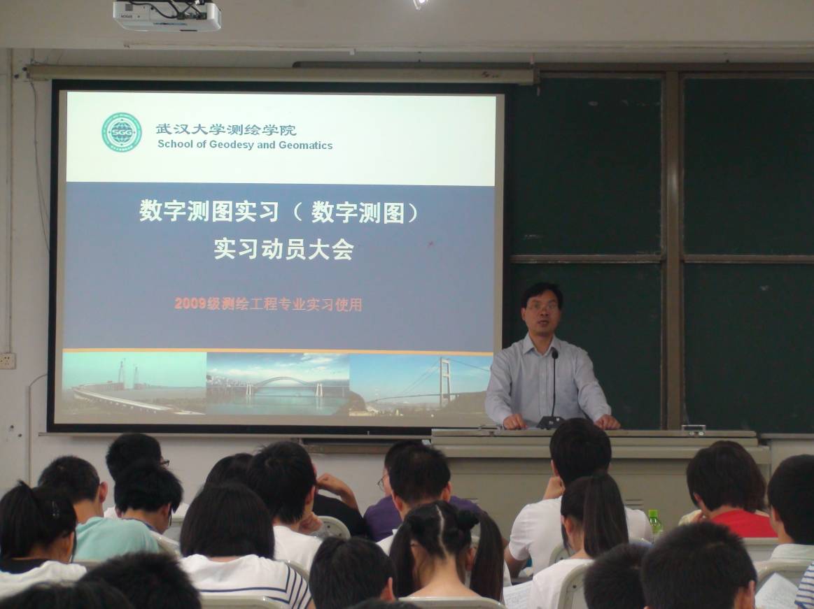 6月2日,草榴社区 2009级测绘工程专业的第二轮“数字测图实习”动员大会在三校区1号教学楼附2-301、附2-302和附2-402教室同步召开。草榴社区 副院长郭际明教授在实习动员会上作重要讲话,360余名学生和全体实习指导教师参加了实习动员大会。