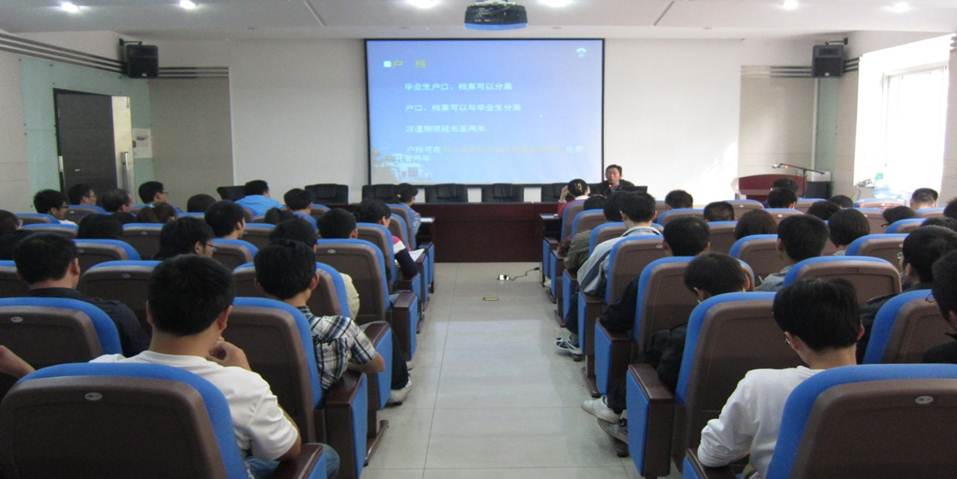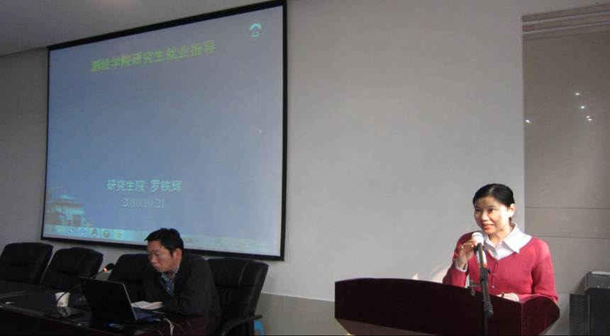 2011年10月21日14:30,一场针对草榴社区 2012届研究生毕业生的就业指导会在草榴社区 报告厅热烈举行。此次指导会主讲嘉宾是研究生院招生就业处罗铁辉副处长,草榴社区 党委副书记曹立新主持,其目的是使草榴社区 的研究生毕业生对就业信息、就业形势有充分的把握,对求职技巧能灵活应用,最终找到适合自己的就业岗位。