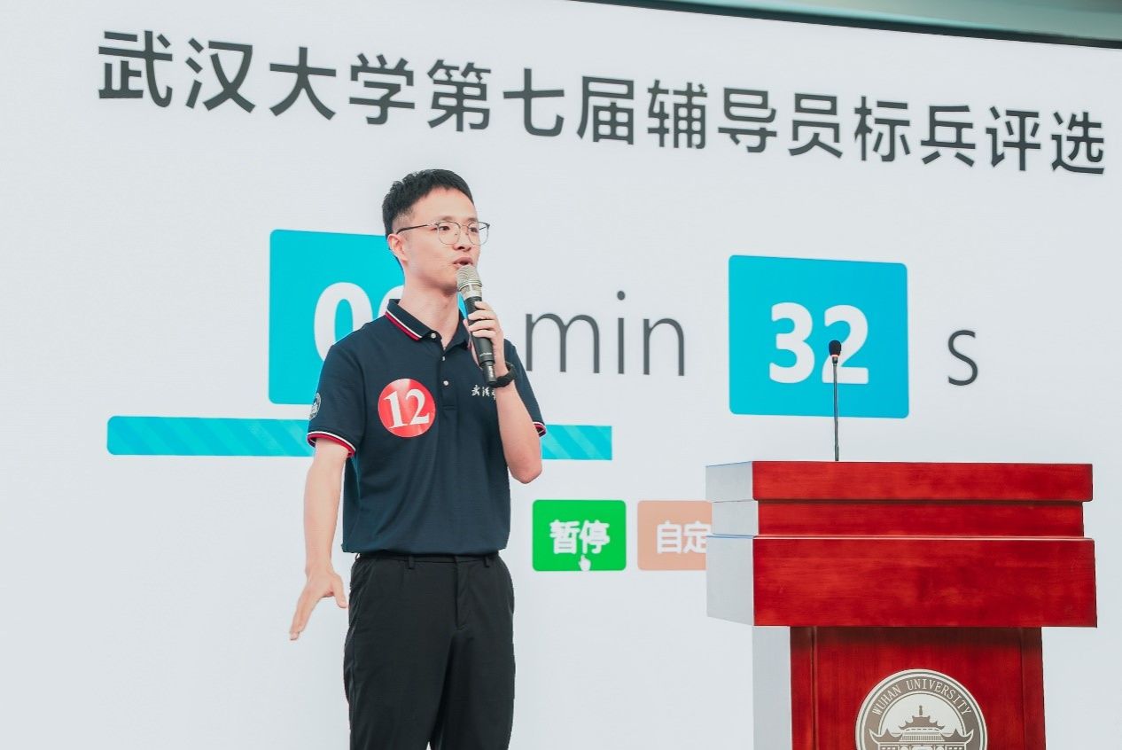 在自我介绍环节,李照通过“18+10=李照=24+4”这个等式引入,讲述了他从18岁来到武大求学至今10年里的学习、成长和收获,以及通过“对学生24小时不断线的关心守护、与学生4年成长路上的携手共进”来践行“用有限的时间去照亮学生们无限可能的未来”的工作理念。在工作对象熟悉度考察环节,李照简单介绍了每位同学的基本情况,并就其中一位同学的育人故事进行分享,讲述了他在疫情防控期间陪伴学生、关照学生、引导学生的动人经历。