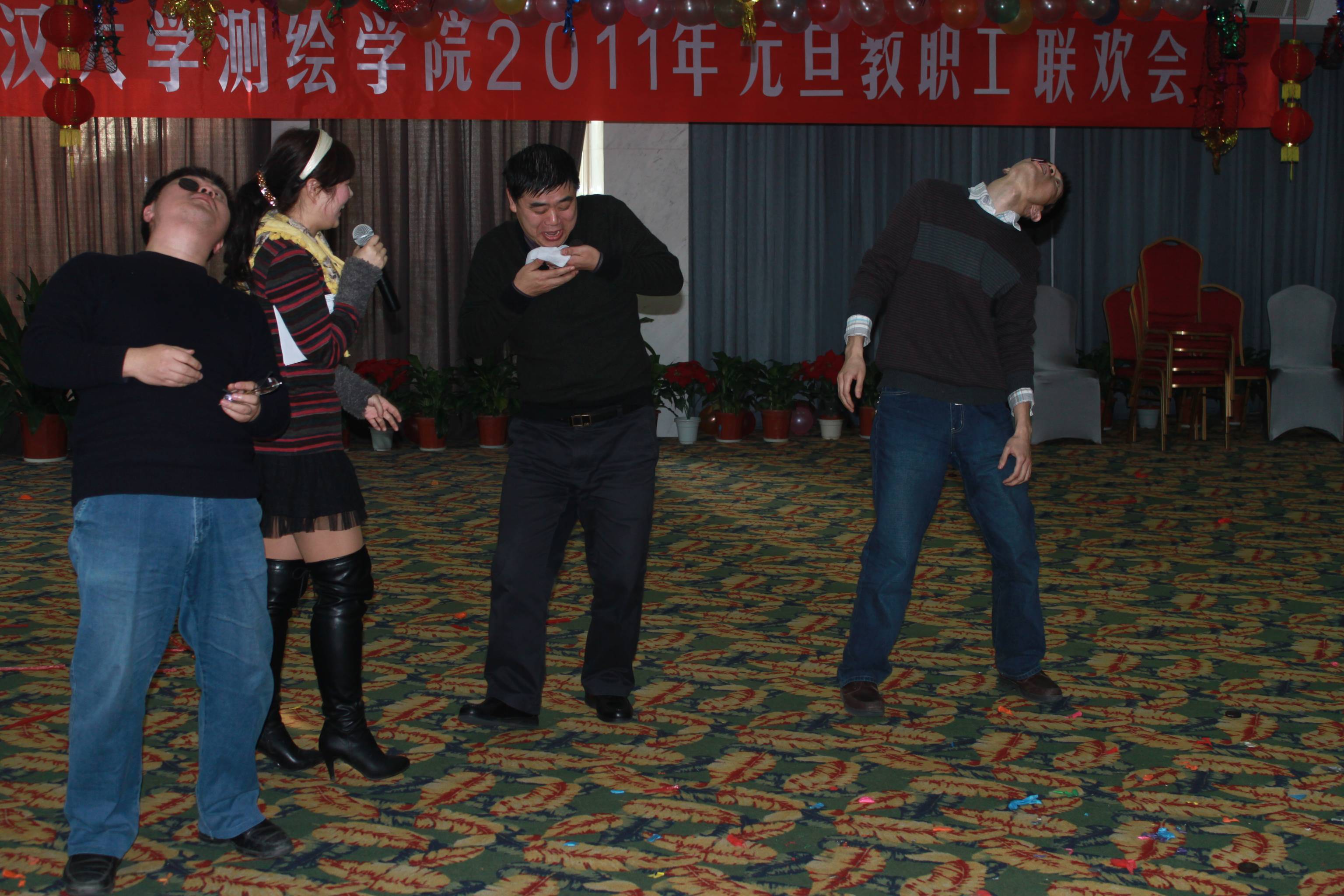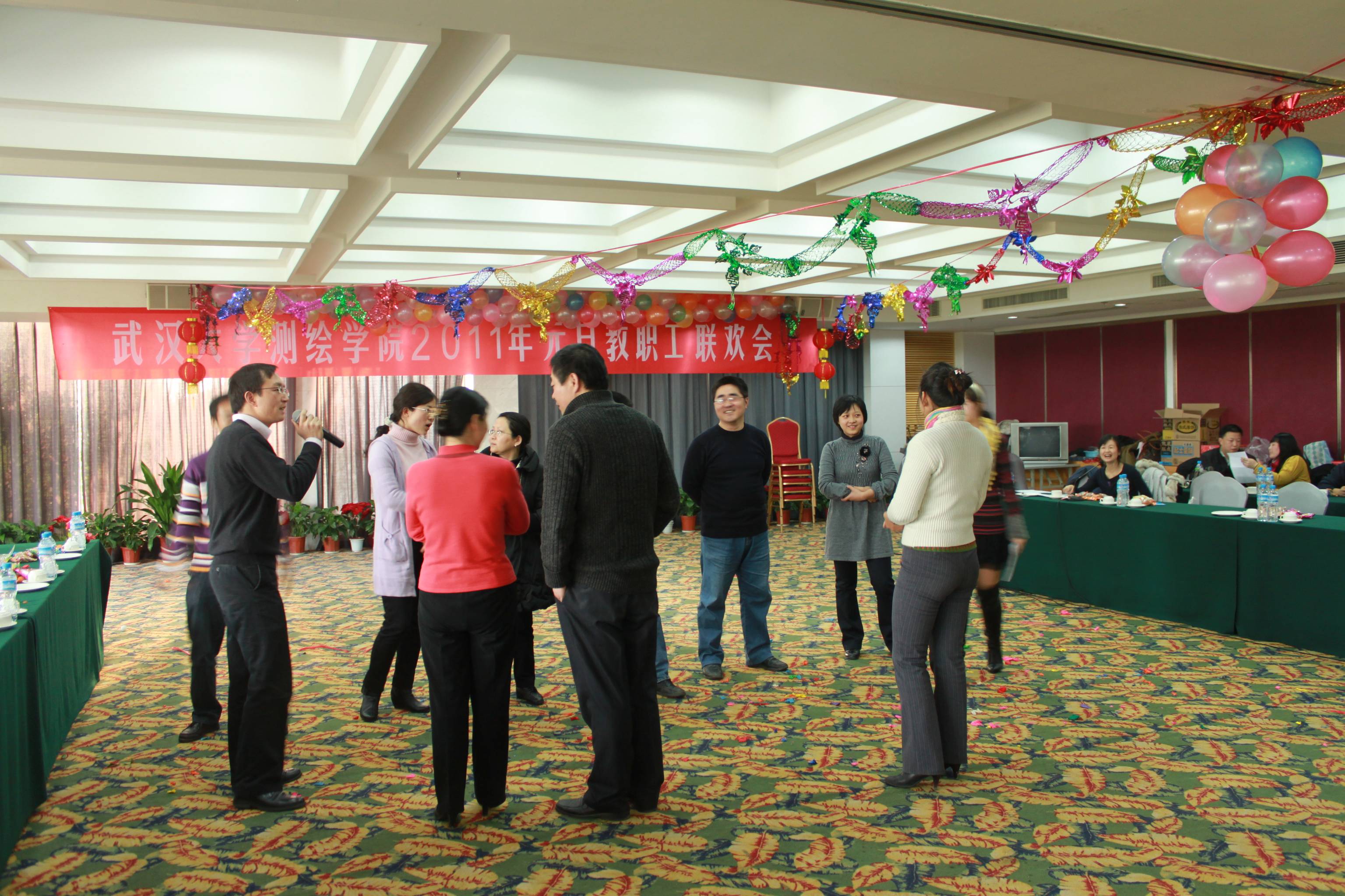 12月25日,适逢西方的圣诞节。由院工会筹办的“2011年草榴社区 教职工元旦联欢会”在武汉职工疗养院举行,中国工程院院士宁津生、院党委书记朱德友、院长李建成、院党委副书记曹立新、院党委副书记张仁杰、副院长郭际明、副院长沈作霖及全院教职工百余人共聚一堂、欢欢喜喜迎接新年元旦。