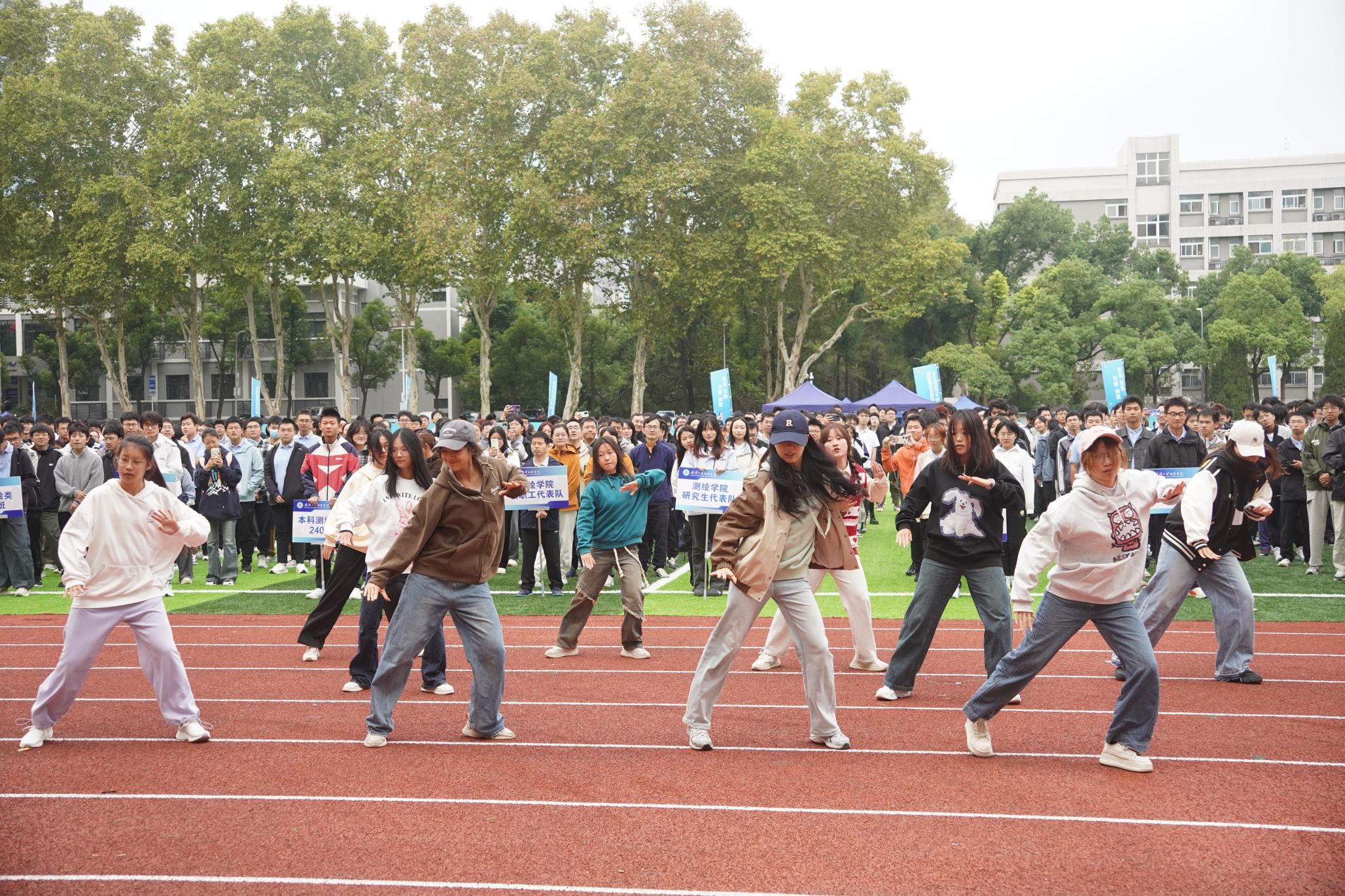 伴随着激昂奋进的运动员进行曲,教职工代表方阵、研究生代表方阵、本科生代表方阵依次入场,他们步伐矫健,口号响亮,彰显着新时代测绘青年昂扬向上的精神风貌。方阵过后,青春靓丽的舞蹈蛋同学们表演优美的舞蹈,展现测绘学子的青春与活力。入场仪式结束后,在全体师生的注目礼下,五星红旗在国歌声中冉冉升起。