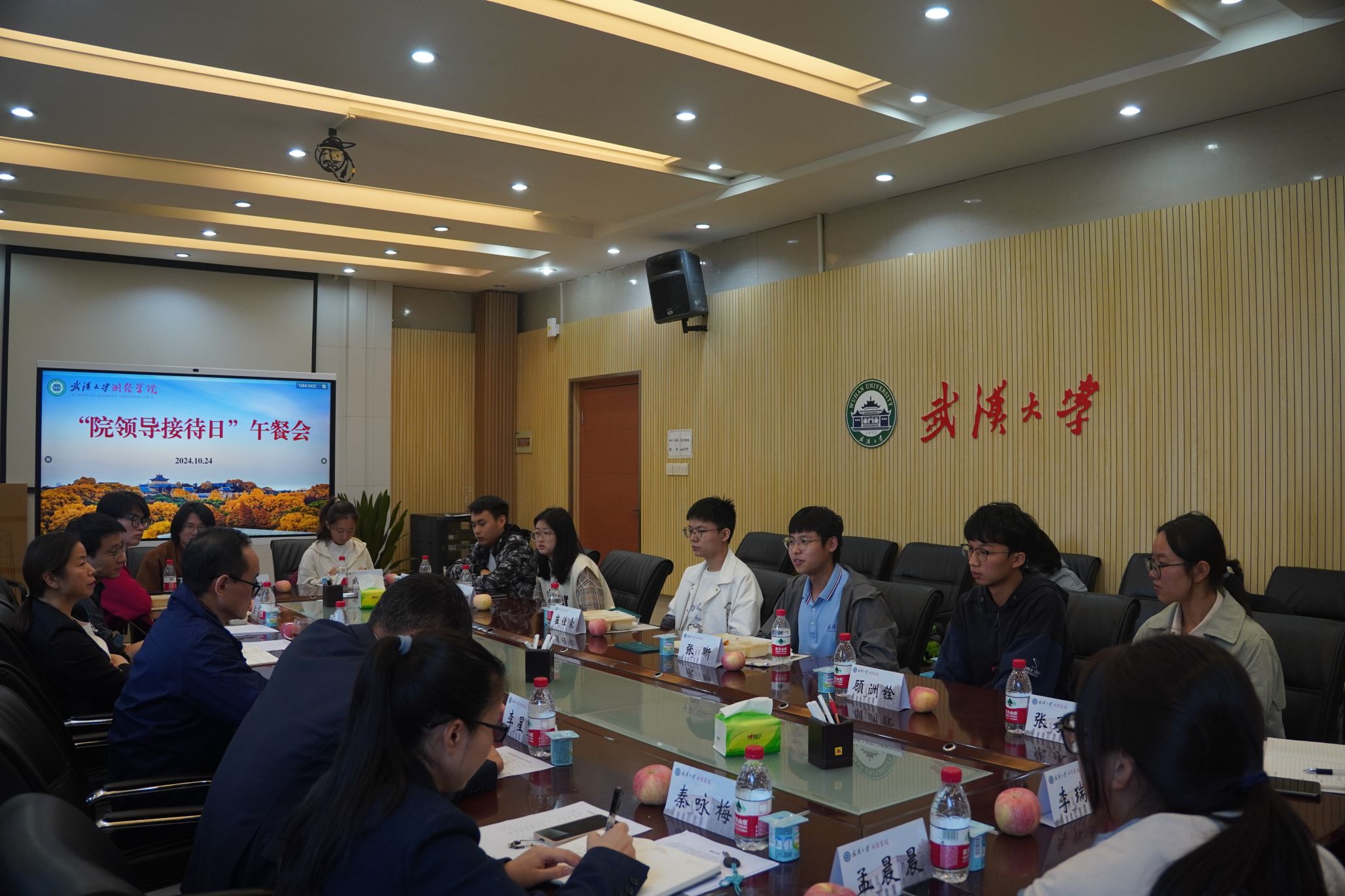 10月24日中午,学院在204会议室举办“院领导接待日”活动,学院党委书记晏金柱、院长姚宜斌、院党委副书记胡英、副院长李星星以及教学办、学工办老师与12名来自不同年级的本科生代表亲切交谈、答疑解惑,交流意见建议。