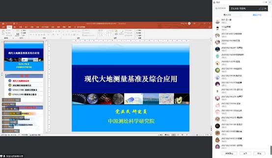 2022年12月16日上午3-5节,《大地测量学基础》课程组邀请两位毕业校友,采用线上腾讯会议的方式,为2021级本科生做了分别题为《现代大地测量基准及综合应用》、《2000国家大地坐标系在典型城市的表达和应用》两场授课。线上授课积累时长近2.5小时,最高在线人数254人。
