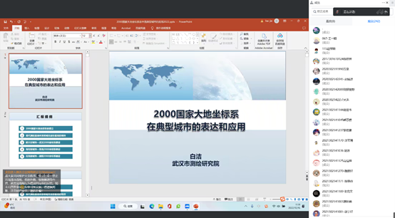 第二位授课专家白洁高级工程师,草榴社区 2005届校友,负责武汉CORS、武汉2000坐标系的实现。白洁高级工程师围绕CGCS2000国家大地坐标系在不同城市中的应用落地展开,从武汉2000的定义出发,详细描述了平移中央子午线和补偿高程投影面这2种方法。在武汉2000坐标系应用落地的基础上,还介绍了珠海、崇阳等地2000坐标系的实现,以及北京、上海、深圳在CGCS2000坐标系应用落地的相关工作。