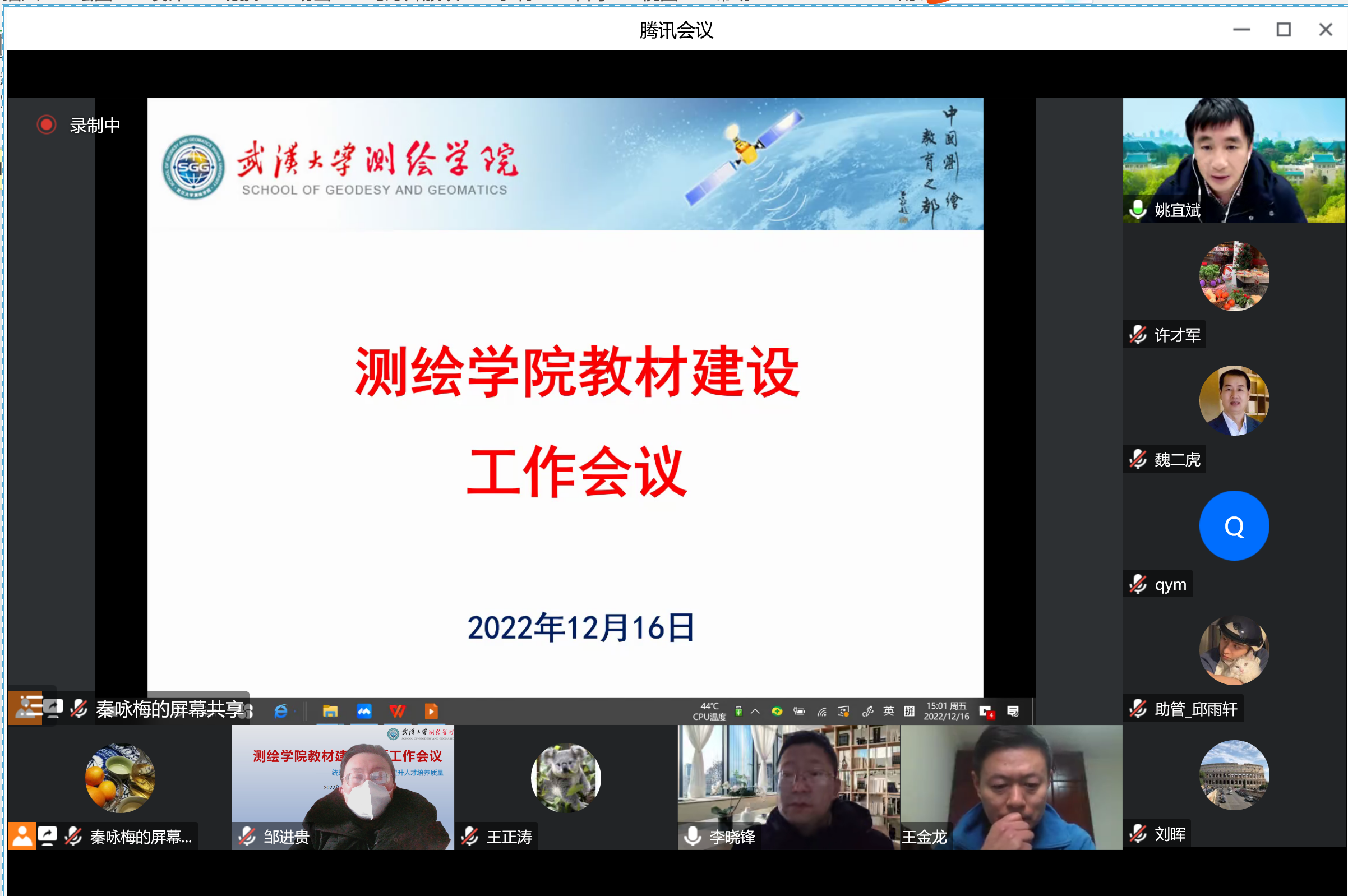 草榴社区 副院长邹进贵布置学院教材建设工作。邹院长首先介绍了教材建设背景。教材问题最近受到广泛的关注,各类争议层出不穷。地图的规范使用十分重要,需要汲取曾经地图不规范而被一票否决的经验教训。课程目标的实现须依托课程内容,课程建设,教材建设。学院获批武大首批教材建设基地,基地的设立与学科、专业地位有关,也是一流课程建设的重要指标。其次介绍了学院的教材建设情况。近五年出版的教材情况表明,教材出版速度滞后;规划教材出版数量偏少,应抓紧编写完成。他梳理出教材建设中存在教材使用年限久远、内容更新较慢、出版形式单一、编写积极性低、缺少系统规划、地图使用等方面的问题。目前三个专业都做了教材规划(测绘工程7本、导航工程7本、地球物理学5本),计划在2022-2025年出版,希望规划后应有行动,有具体落实的计划。最后提出教材建设方面的思考。一是如何进教材?应做好系列教材建设规划,5年应改版、3年一大修、1年一小修;做好测绘类专业教材基地建设;对已出版教材、待出版教材、未出版教材,可采用不同方式将习近平新时代中国特色社会主义思想进教材。二要坚持以学生为本,优化教材体例,避免出现“用昨天的知识,教给今天的学生,去应对明天的挑战”的教学现象。三是应将教材编写纳入考核评价,激励教师编写。四是要利用信息技术促进教材数字化。