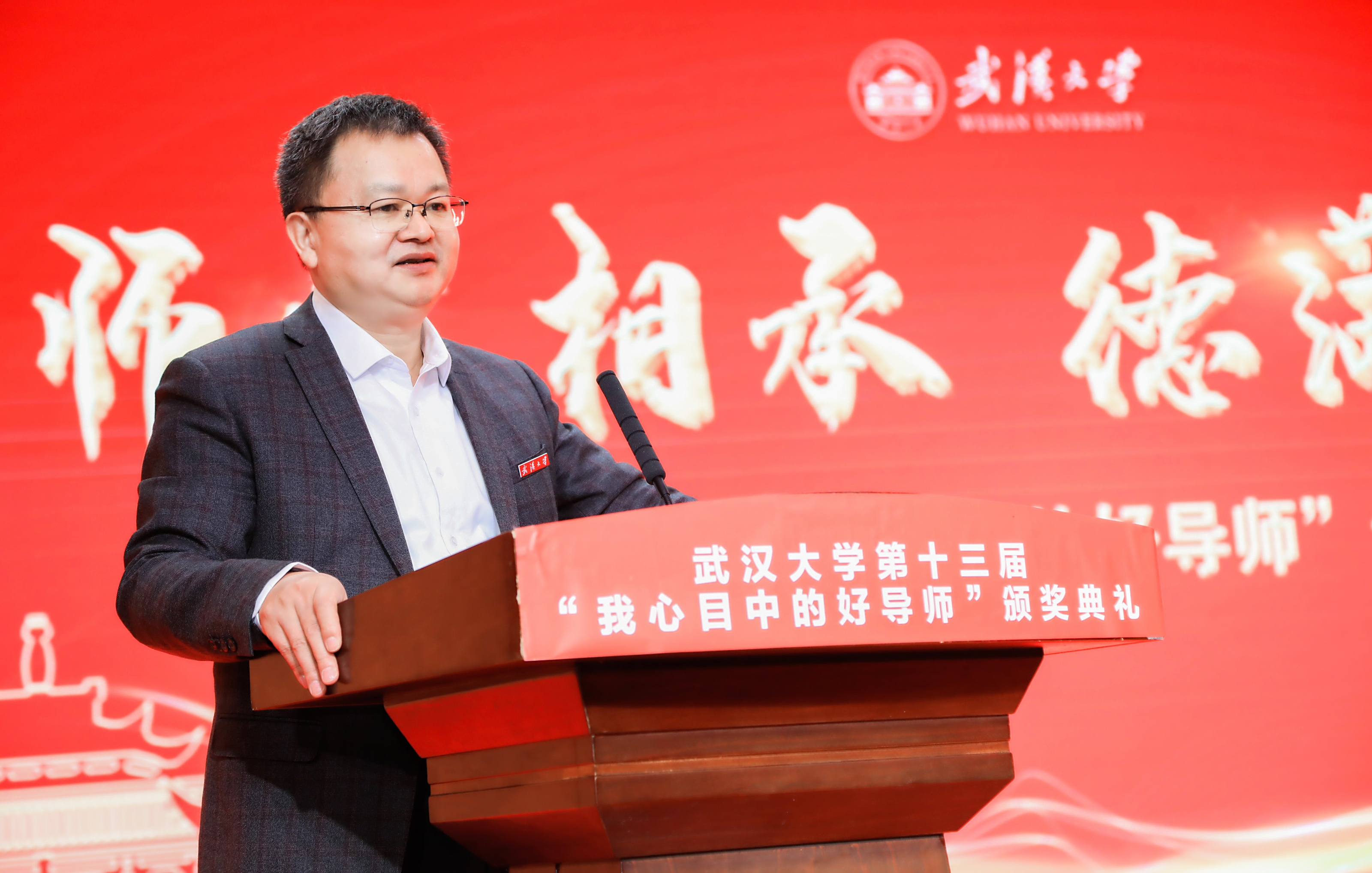 校长张平文院士讲话,他对十位获奖的研究生导师表示衷心祝贺,围绕新时代高校导师肩负的重要使命、什么是“好导师”、如何成为“好导师”等三个维度,他强调了导师对于学校发展和人才培养的重要价值,指出好导师应有人格魅力、关爱学生,能够帮助学生找到兴趣所在、擅长之处。他希望广大导师志存高远,树立大情怀,安心做大学问,敢于做大问题,甘于坐“冷板凳”,服务国家战略需求,争当“大先生”;号召广大学生向身边好导师学习,传承珞珈学术精神,珍惜学习机会,选好研究课题,锤炼能力本领,谱写绚丽的珞珈青春华章。