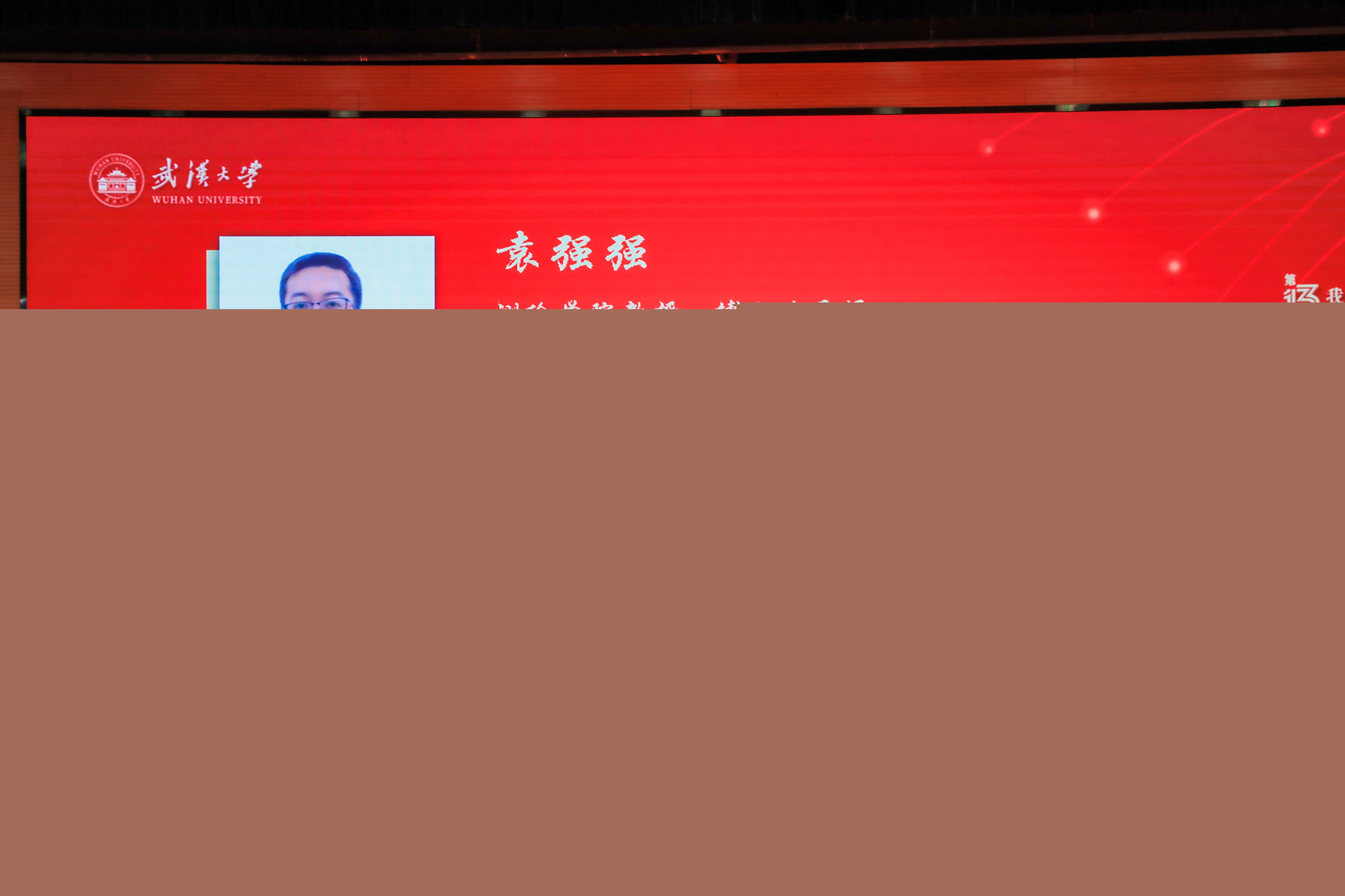 袁强强教授的博士生、草榴社区 学术创新特等奖、草榴社区 优秀研究生标兵获得者何江为袁强强教授颁奖。在给袁强强教授的颁奖词中这样写道:“群星璀璨,他覃思精研遥望浩瀚夜空;世间交融,他刮摩淬励感知祖国山河;师者匠心,高山仰止,他甘为春泥沃土,鞠躬尽瘁育得满园芬芳;学者纯心,景行行止,他投身复兴伟业,呕心沥血浇筑强国之基;他如兰草、若明月、似朝阳;光芒洒满大地,涓流汇于百川;永含激情、永葆热爱,使命不忘、初心不改。”