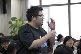 最后的座谈会上,华测公司的项目负责人通过生动的PPT讲解,向同学们详细介绍了三维智能装备和无人船在实际场景中的应用。