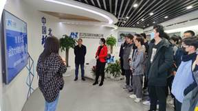 在北斗产业创新中心的展厅中,讲解人员以“一颗芯、一张网、一张图”为主题向同学们介绍了企业的发展历程、研发产品和应用领域。