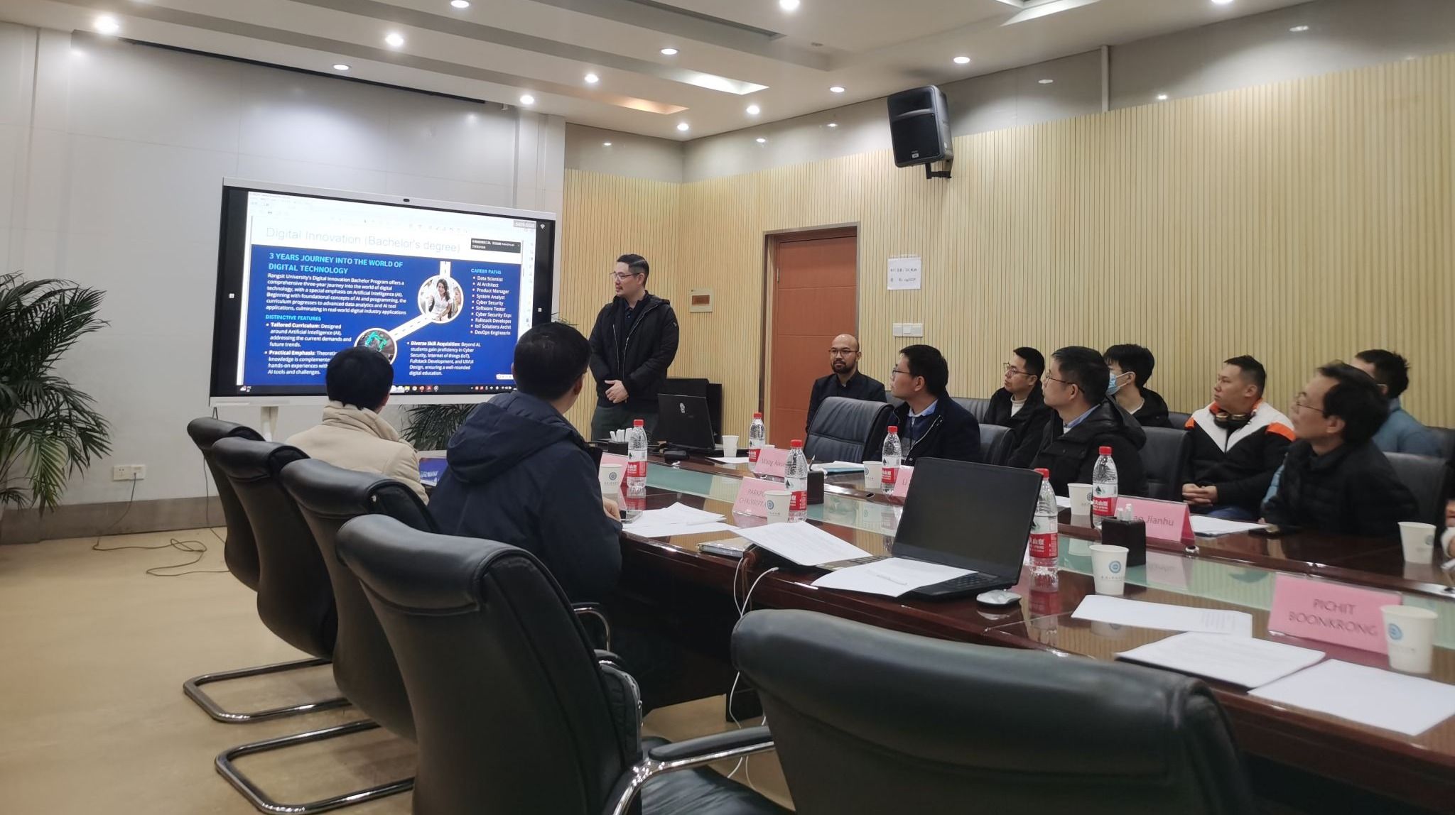 2023年12月14日上午,泰国兰实大学数字创新技术学院副院长Dr.Parkpoom Chaisiriprasert、数字创新技术学院数字创新系主任Dr.Karn Yongsiriwit等一行四人到访草榴社区 并进行学术交流。学院副院长李星星教授、海洋研究院院长赵建虎教授、王爱学老师及相关课题组研究生参加了交流座谈。