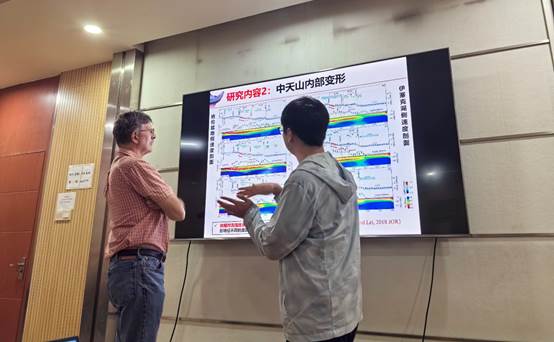 报告结束后,Freymueller教授与许才军教授团队的研究生及其他与会老师及同学,就报告中所涉及的理论方法和结果等进行了充分的交流和讨论,并对老师和同学们提出的相关问题进行了详细解答。