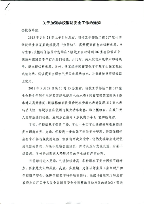 关于加强学校消防安全工作的通知